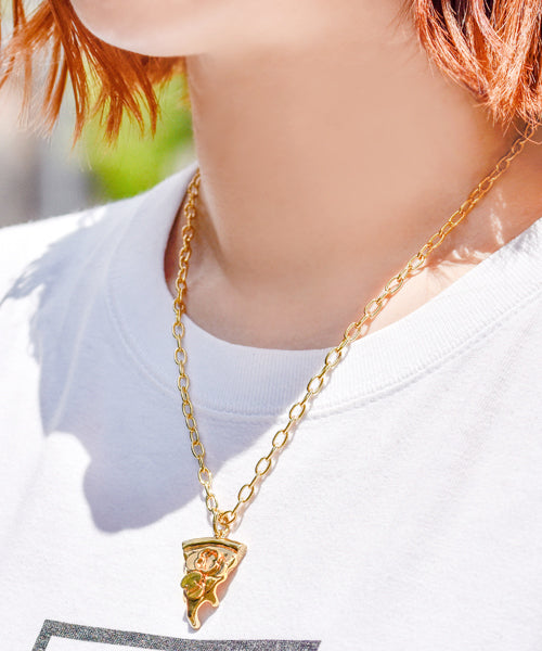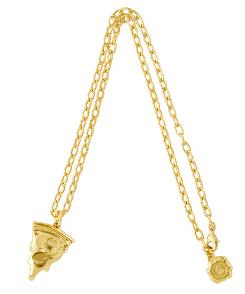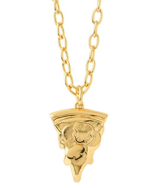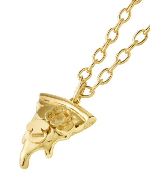 A necklace capturing the mouthwatering moment of a freshly sliced, piping hot PIZZA.