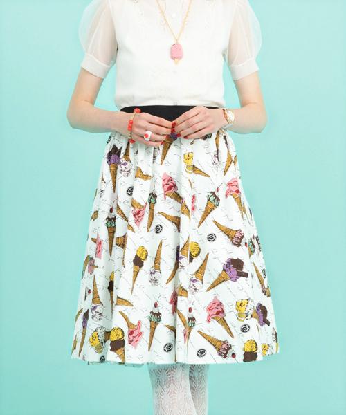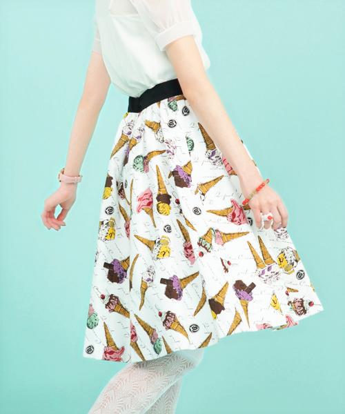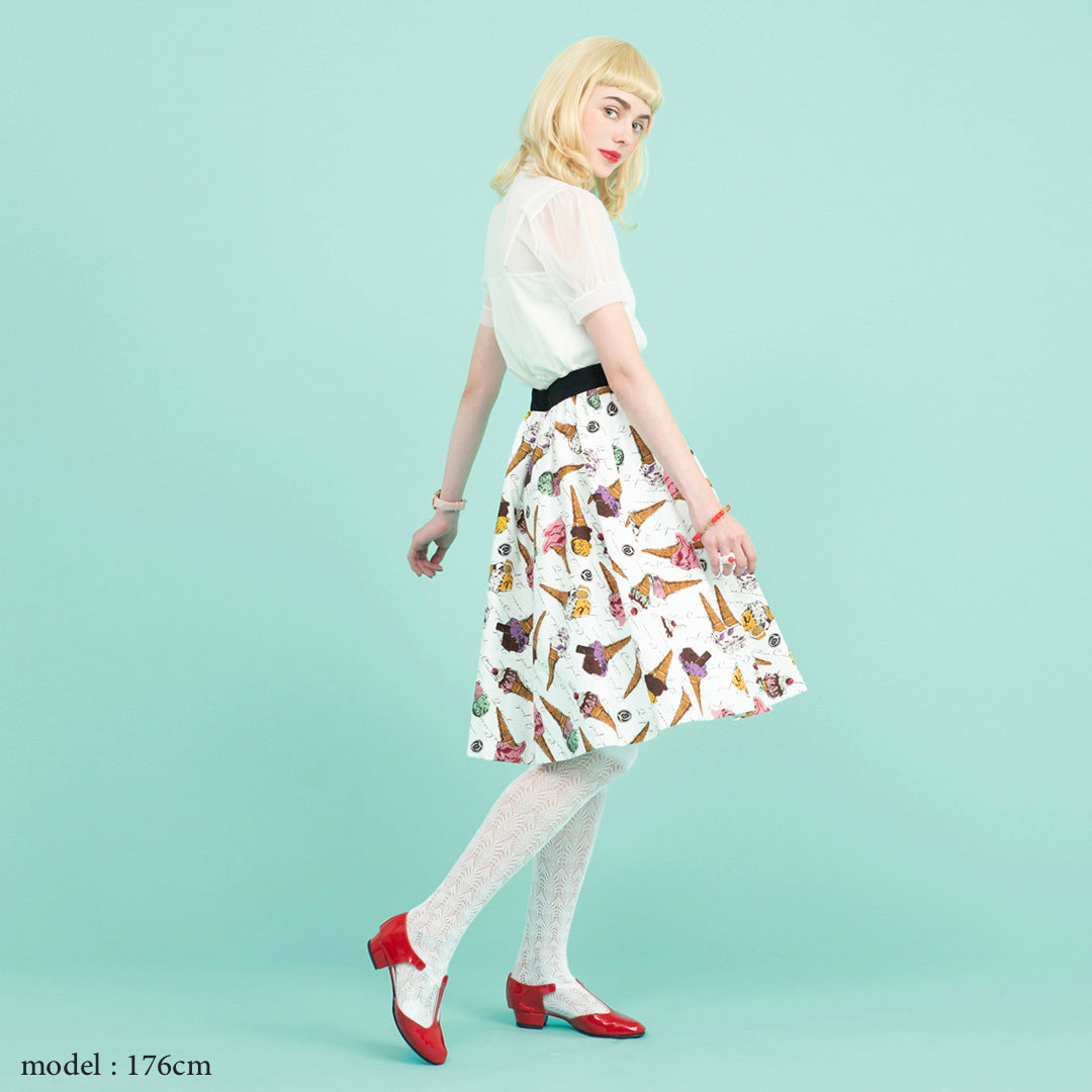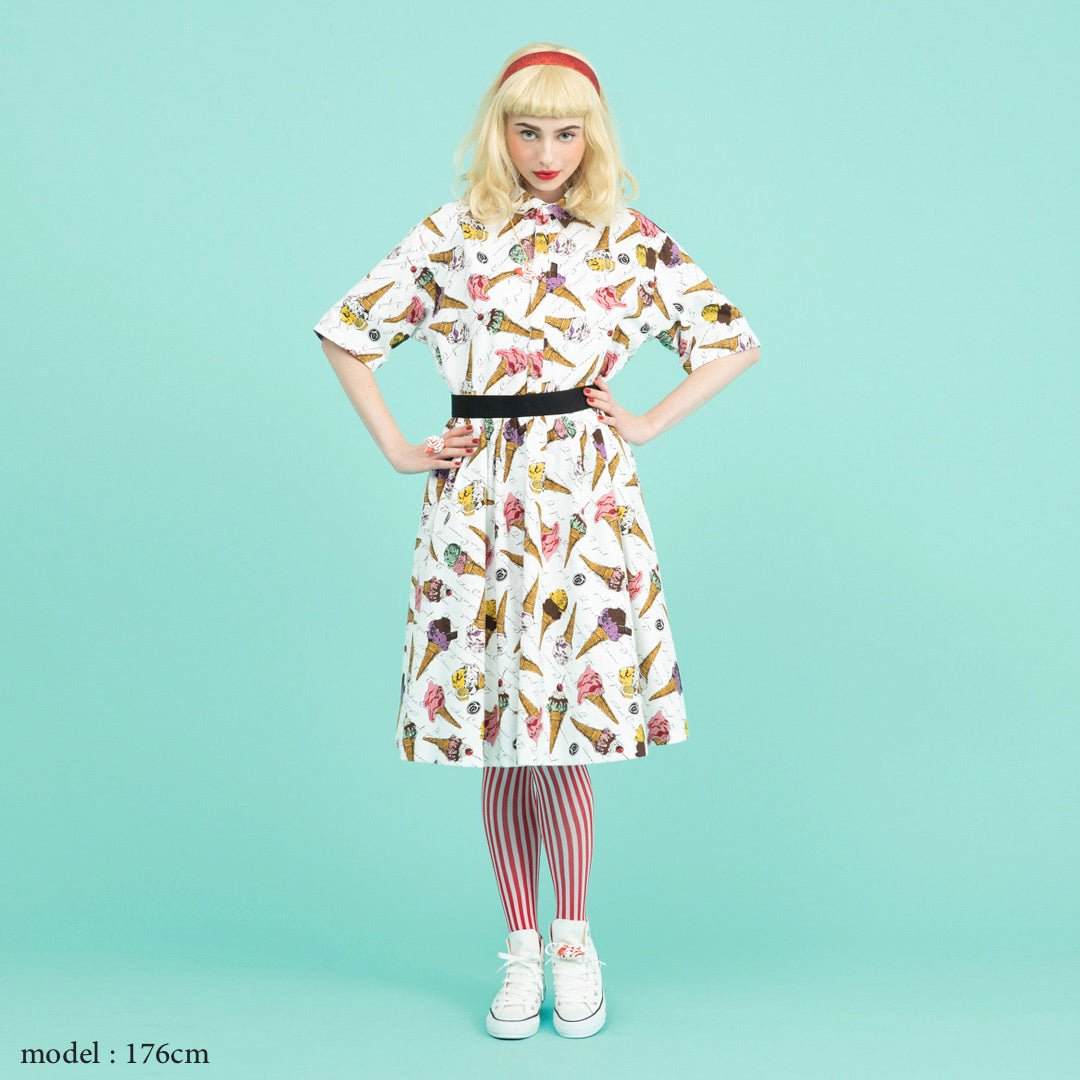 Colorful ice cream as an original designed pattern. Match it with vivid color tights and accessories then you can be an American girl!