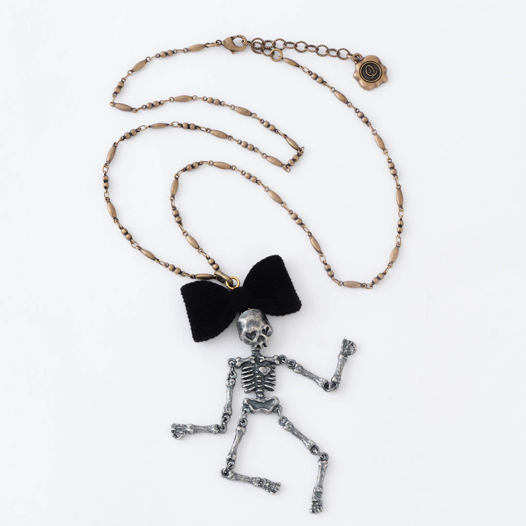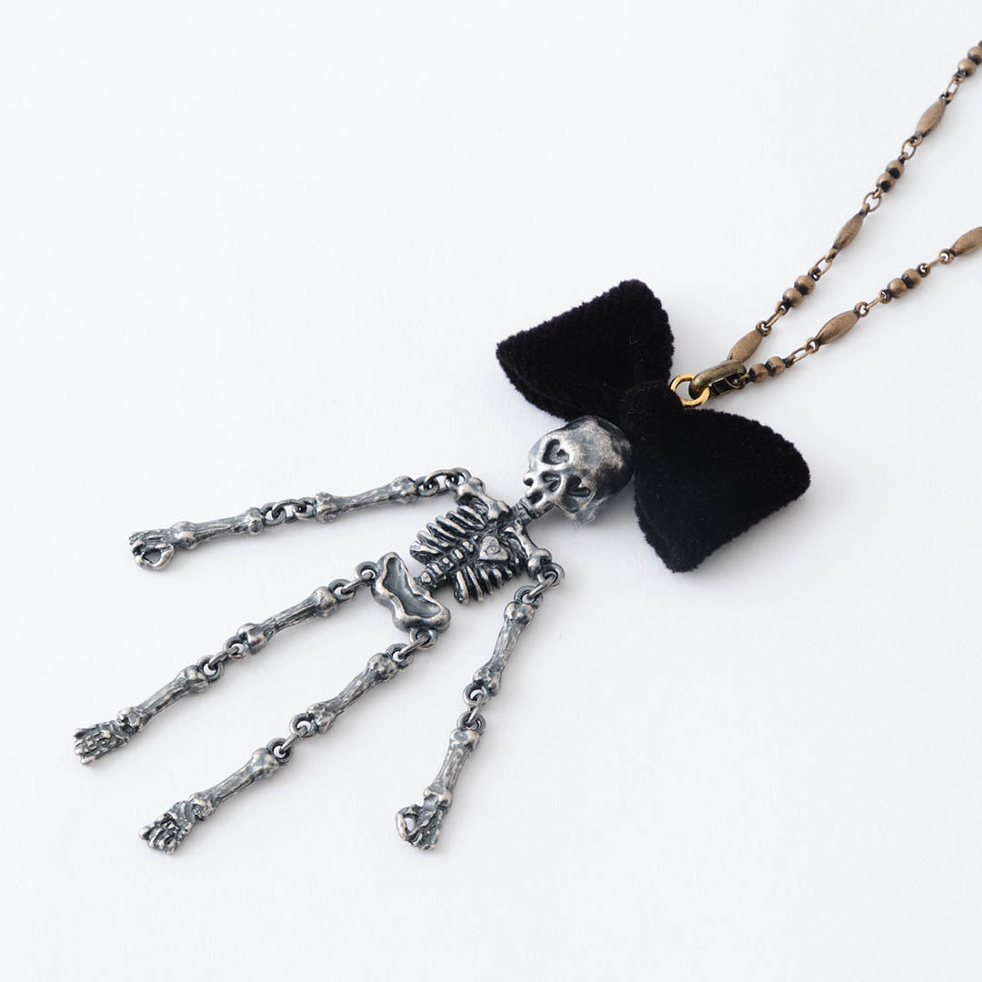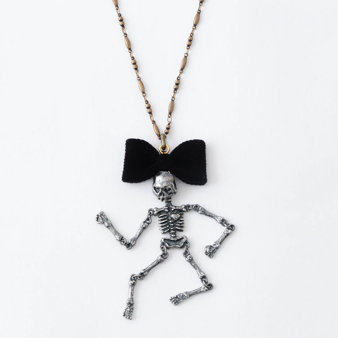 Dancing Skull Ribbon Necklace【Japan Jewelry】