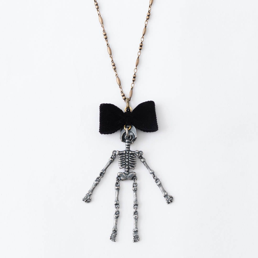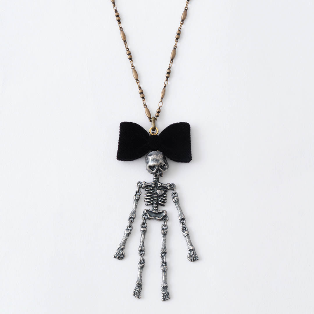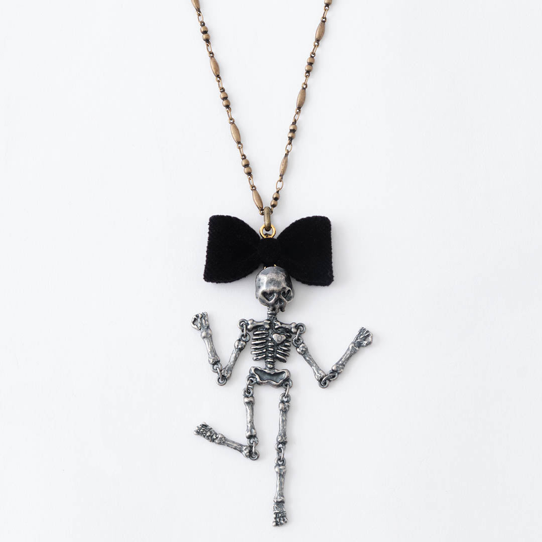 Dancing Skull Ribbon Necklace【Japan Jewelry】