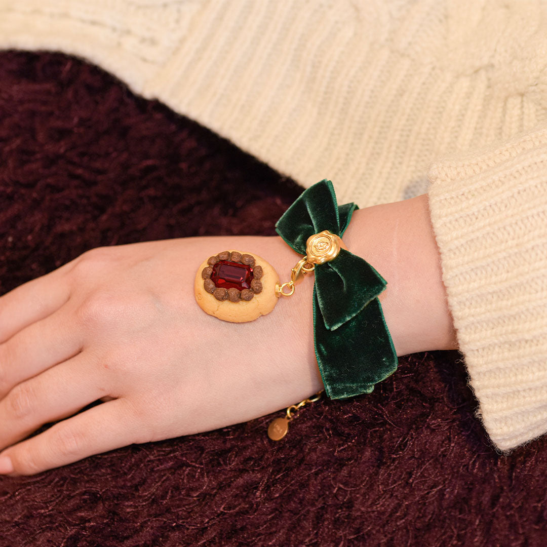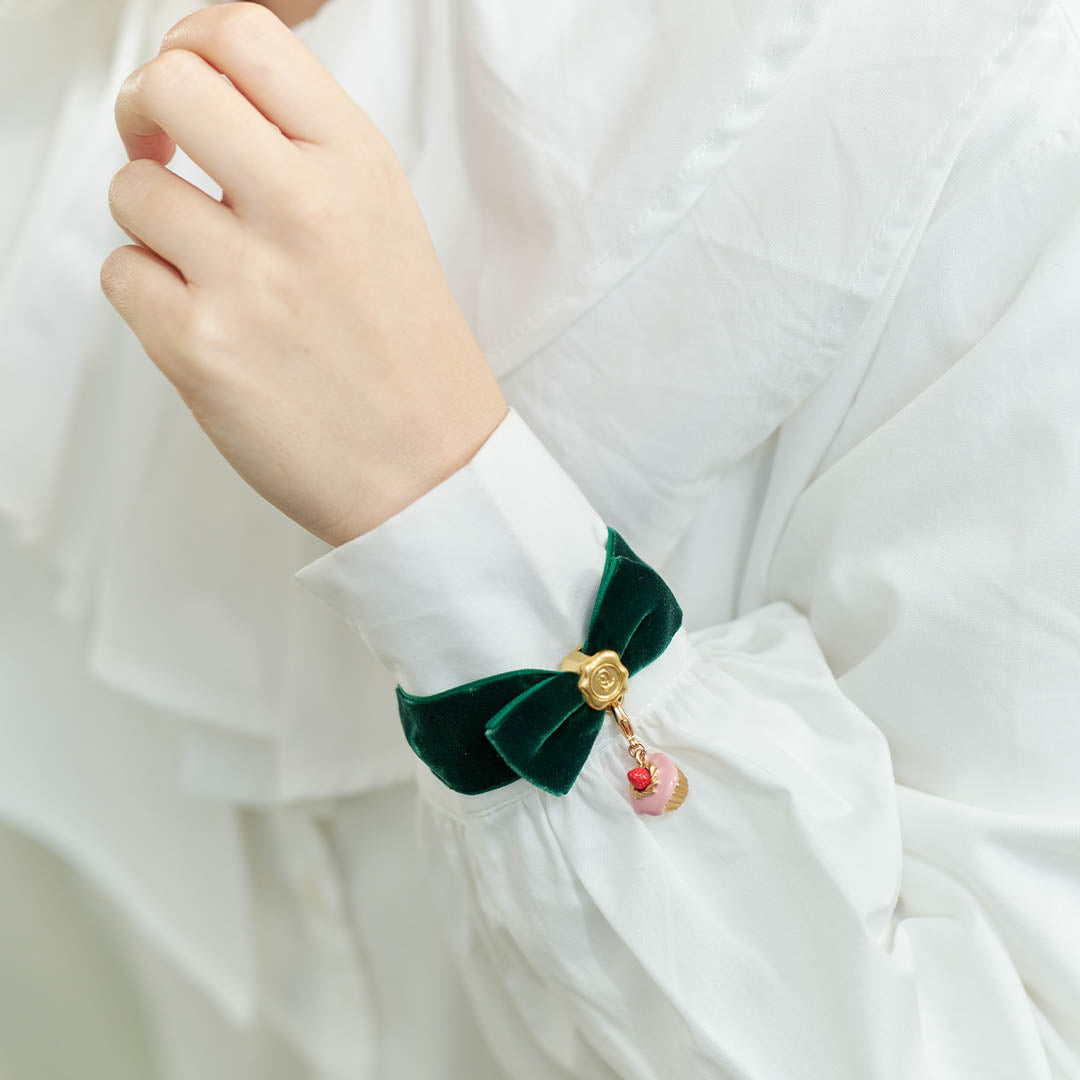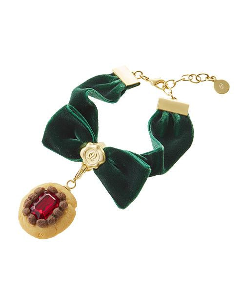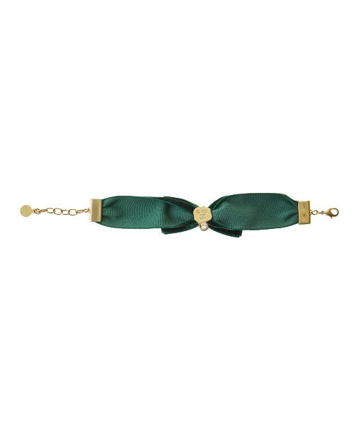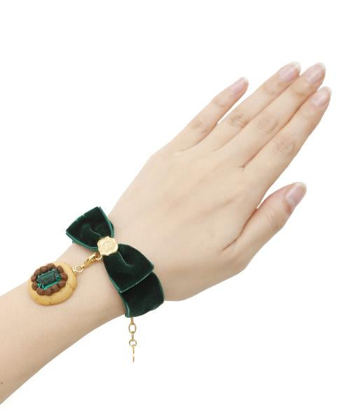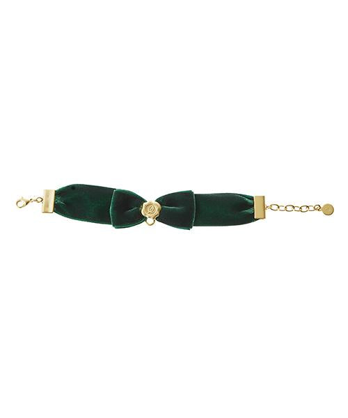 Selectable Happiness Velvet Ribbon Bracelet (Green)【Japan Jewelry】