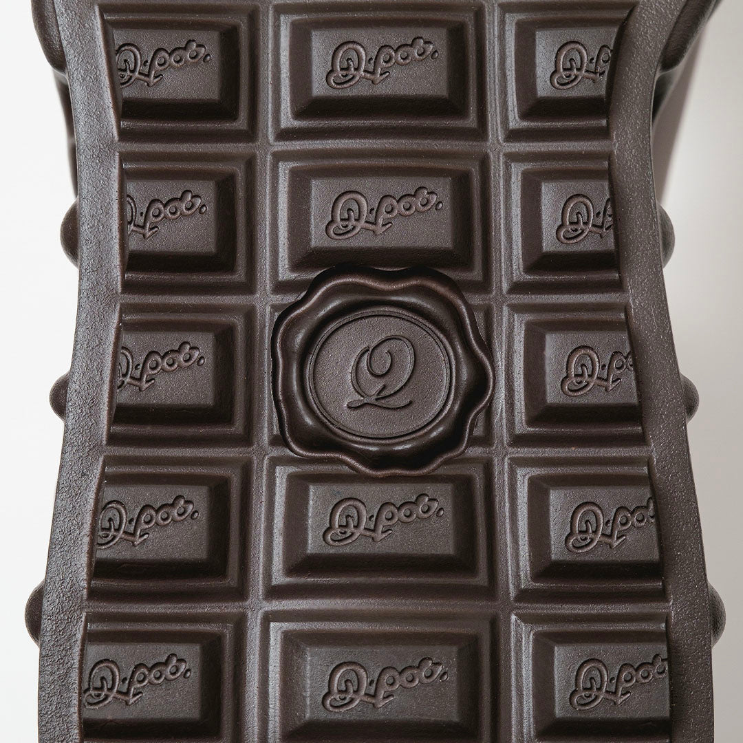 By the way, the bottom of the sole is chocolate. After walking, the pieces of chocolate (=PEACE) spread out. I'm sure that the footprints left by someone will make someone smile again. I believe that Q-pot. SHOES will expand the connection of smiles all over the world.