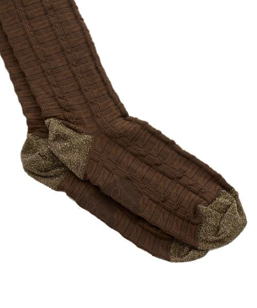 Elegant and also very sweet chocolate brown colored tights is MADE IN JAPAN by craftsman carefully. Gold lame yarn is used for toe and heel, it is fashionable and also strong. Please enjoy sweet autumn fashion with this special leg wear collection.