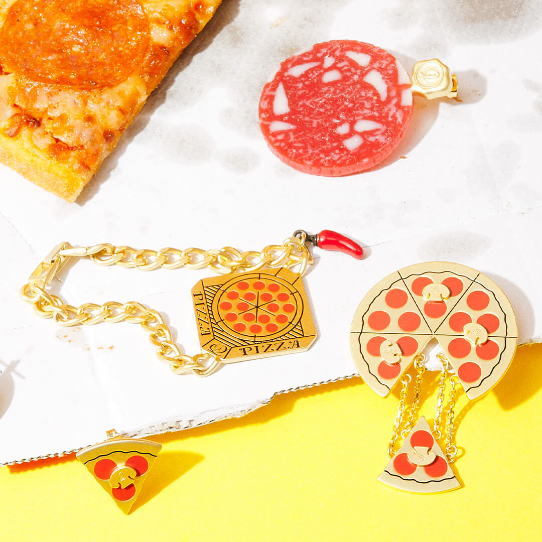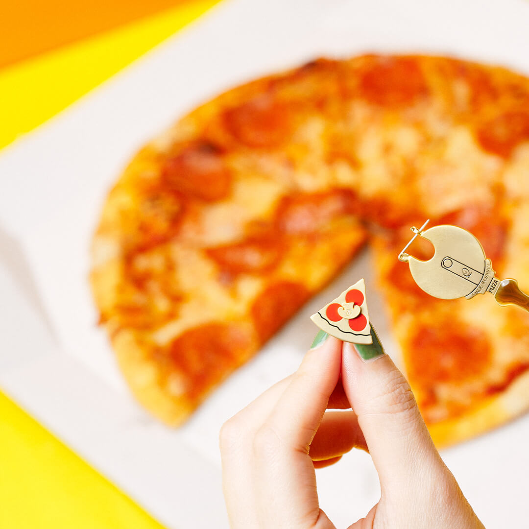Pepperoni Pizza is available as a piece of pierced earring. Enjoy the combination with a pizza cutter!