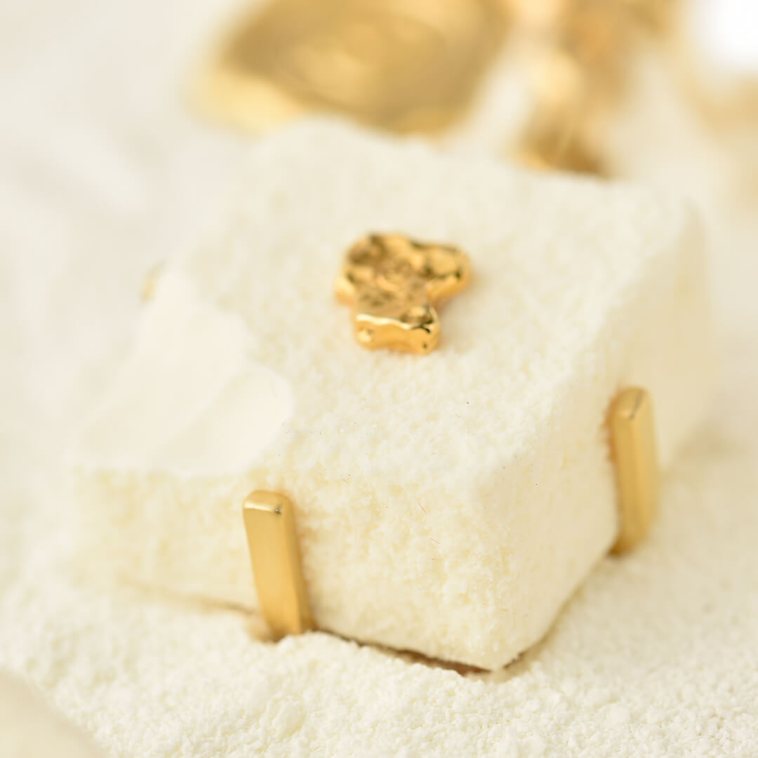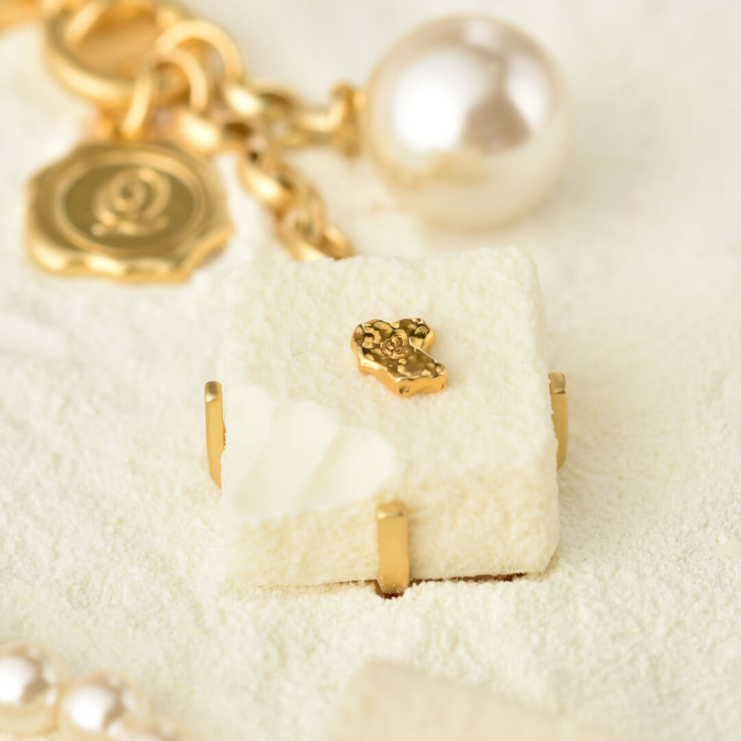 Ganache inspired by the pave of Paris, luxe chocolat, rich and elegant chocolate looks so real as it is. The smooth details of the ganache with a tiny bite and the gold leaf on the top create a luxurious sense.