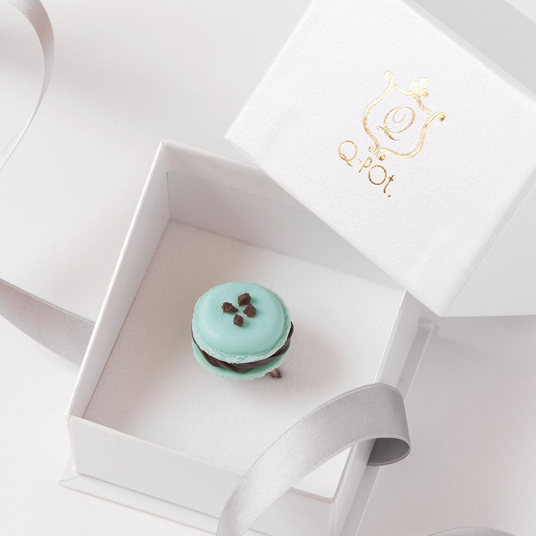 Fresh mint flavored macaron with rich chocolate cream. Decorated with crunchy chocolate on top, you will feel happiness with it. The texture of it looks so real and delicious no matter how many times you look at it. Made in Japan and carefully finished by craftsmen.