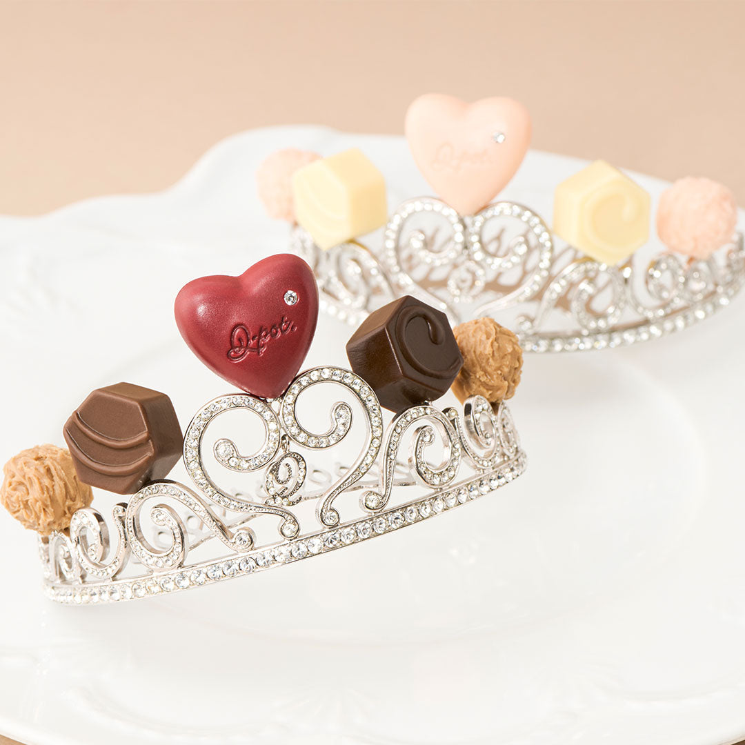 Let Q-pot. be a part of your wonderful wedding! Several kinds of Luxe Chocolat on top, and the sign of Q-pot. in the middle. Crystal glasses decorated on the tiara making it a gorgeous item.