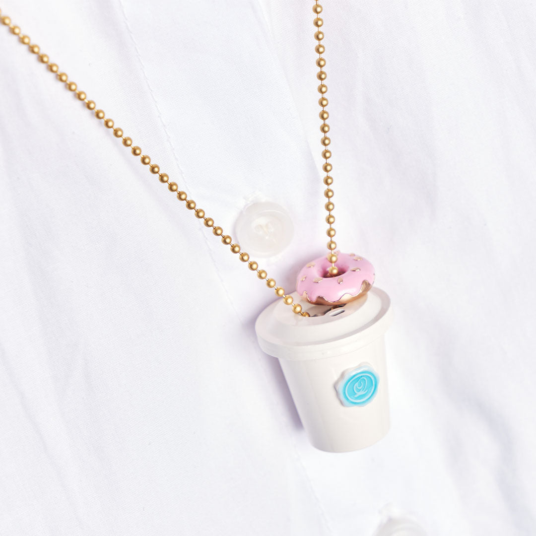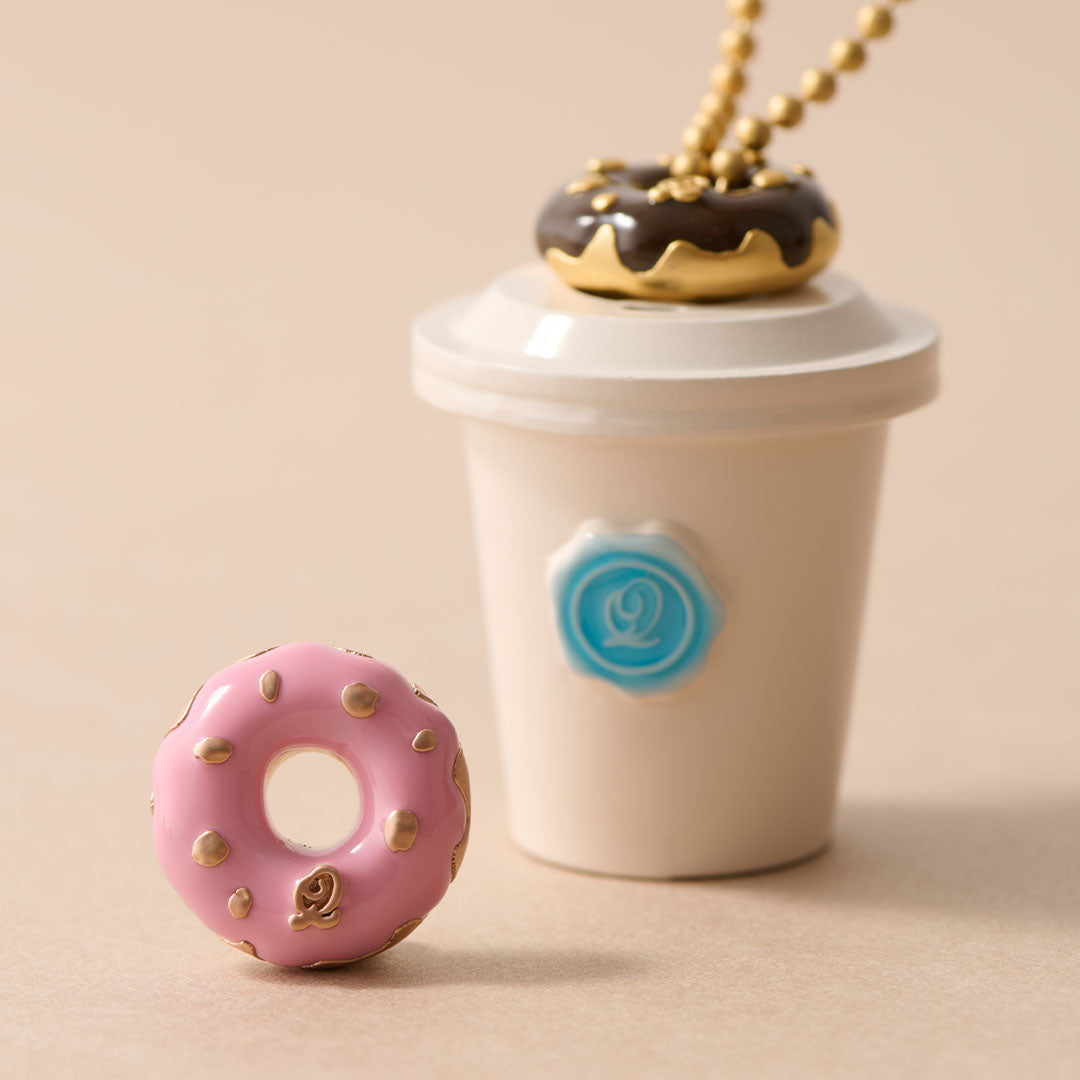 A doughnut charm topped with creamy strawberry sauce and fragrant nuts. Combine accessories like choosing from a cafe menu, top with whipped cream alongside coffee and enjoy your own delicious coordination! Made in Japan and carefully finished by craftsmen.