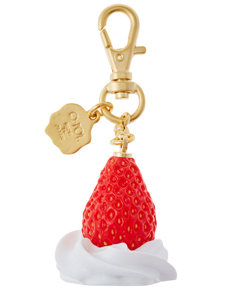 A bag charm featuring a dollop of fluffy whipped cream topped with a whole, juicy strawberry. With its incredibly realistic and mouthwatering texture, this piece resembles an actual dessert. Every tiny seed on the strawberry has been meticulously crafted, showcasing exquisite attention to detail. Add a sweet touch to your bag, just like decorating a cake! Made in Japan and carefully finished by craftsmen.