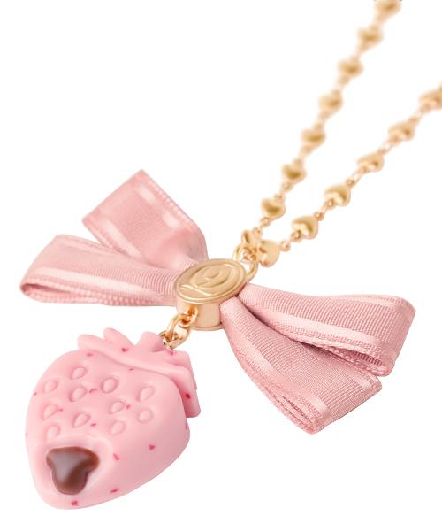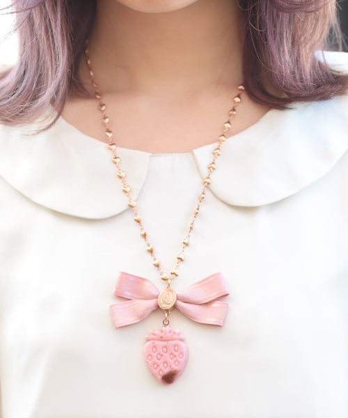Strawberry Ganache Ribbon Necklace (Pink)【Japan Jewelry】