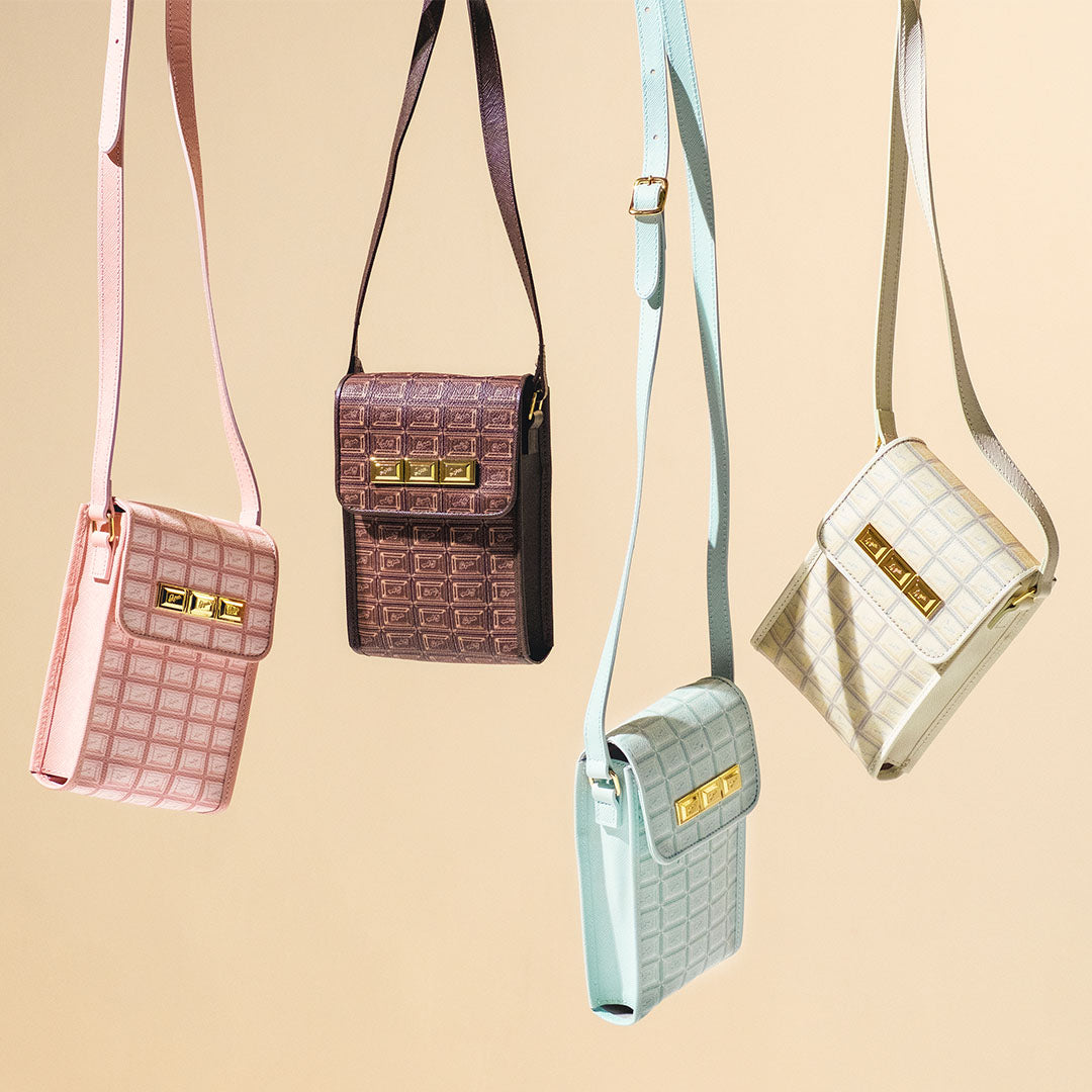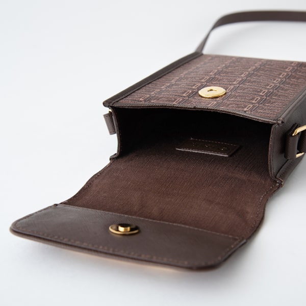 This smart mini bag is inspired by a bar of rich chocolate and handcrafted in Japan with playful elegance. Lightweight yet durable, it’s made from stain-resistant PVC-coated canvas and finished with an adjustable genuine leather strap.