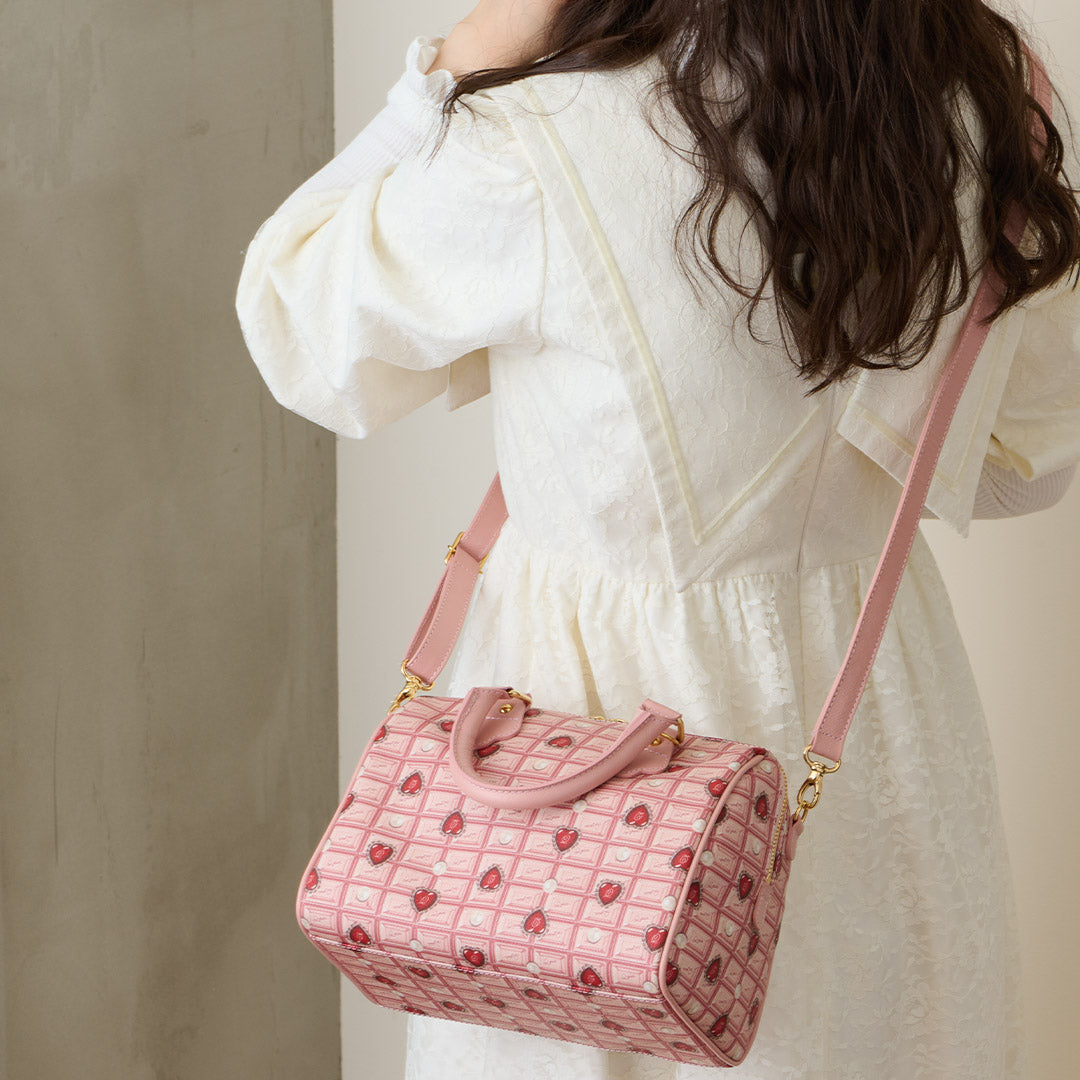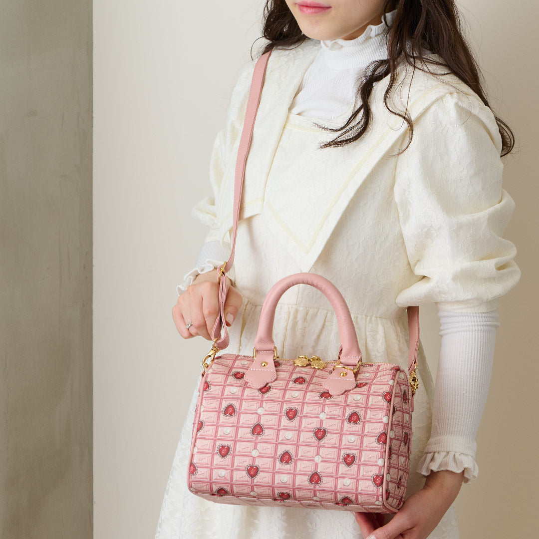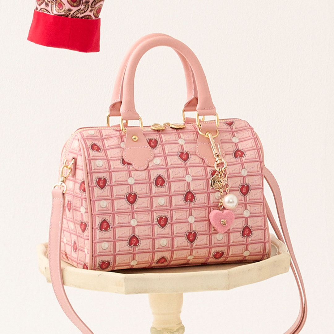 Heart Strawberry Chocolate Mini Boston Leather Bag【Japan Jewelry】