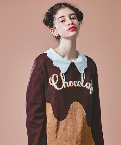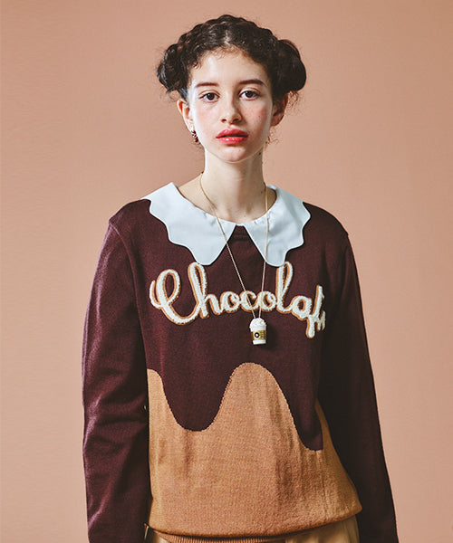 Melty Chocolate Crew Neck Knit Sweater (Bitter)【Japan Jewelry】