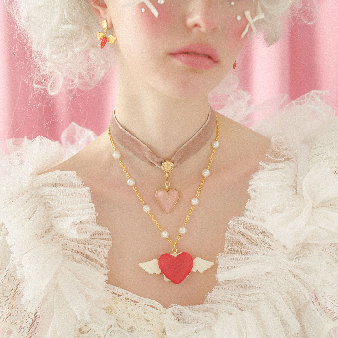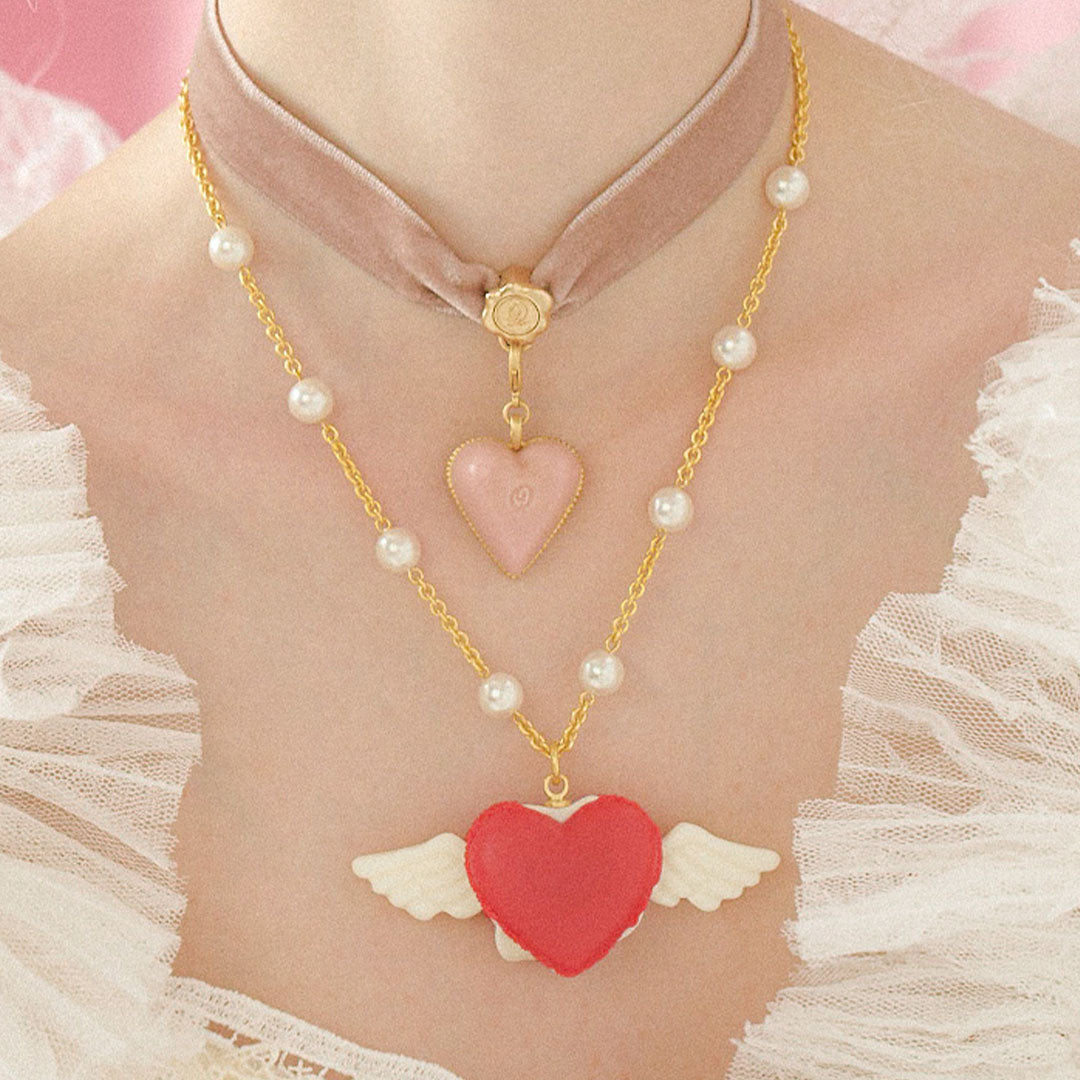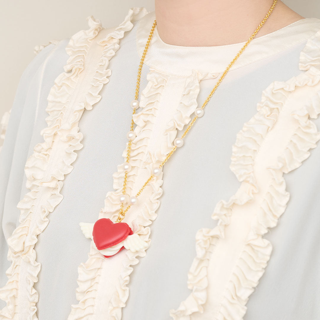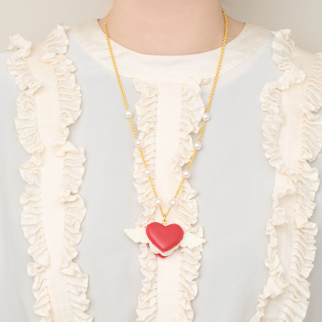 Angel Heart Macaron Necklace (Red)【Japan Jewelry】