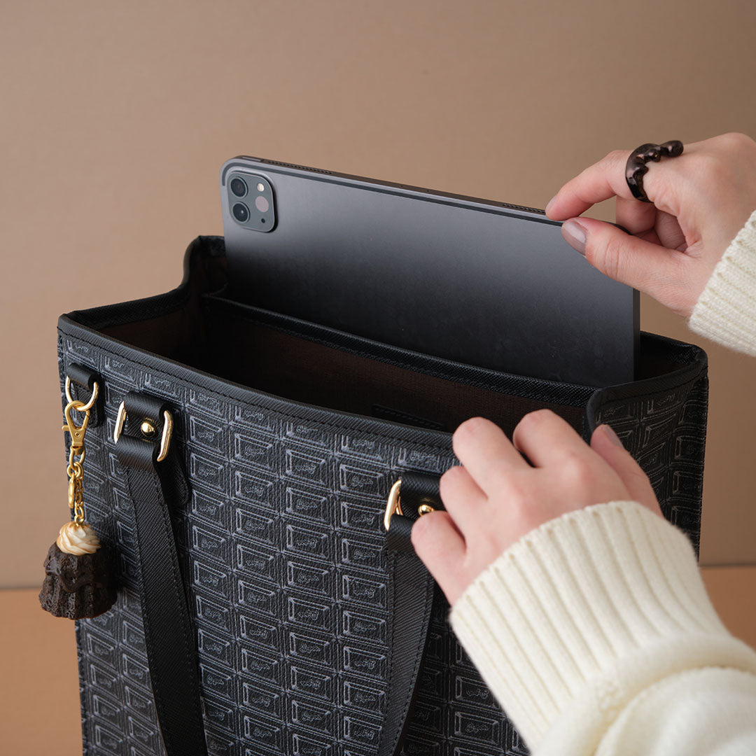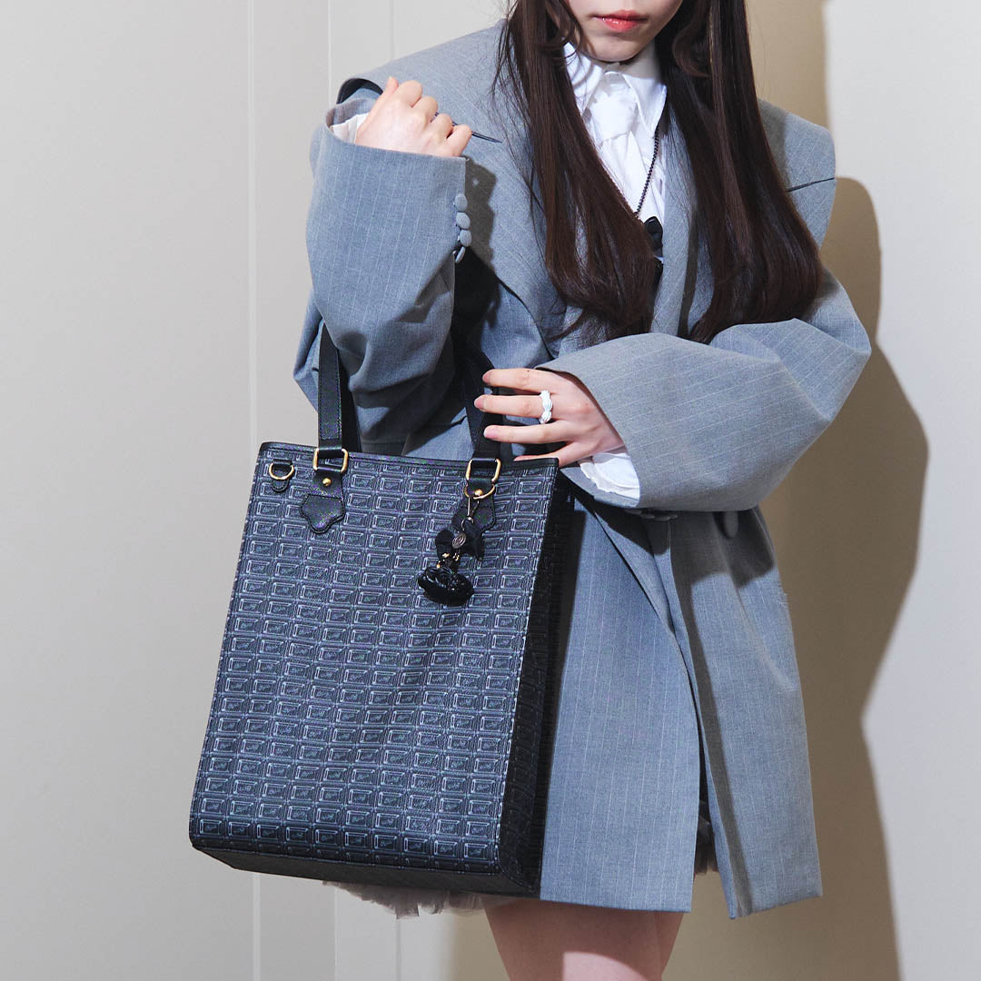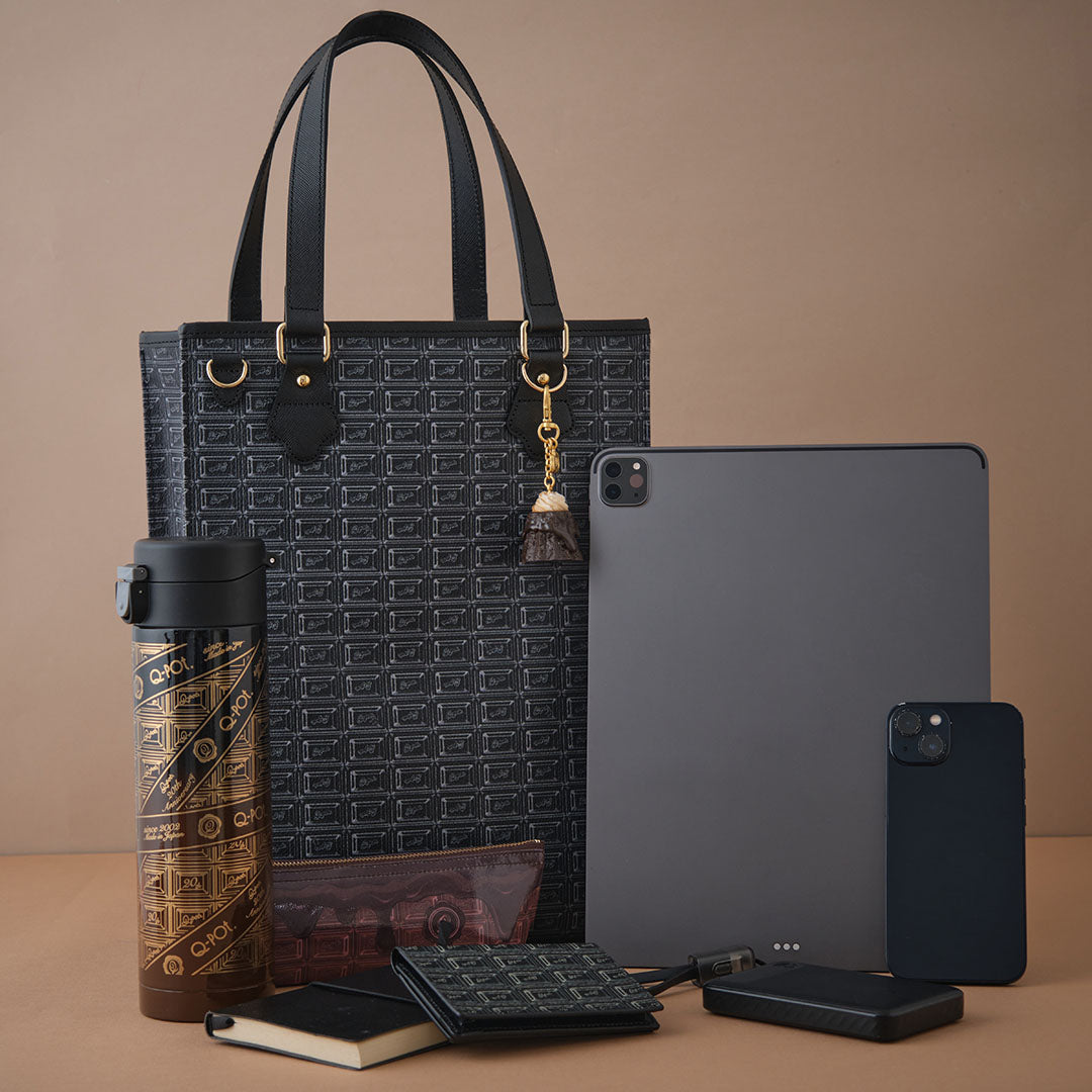 Crafted to enhance usability, it is multifunctional for carrying laptop and tablet or attending theater and fan events. A sweet yet functional everyday bag — carry it by hand for a polished look, or sling it crossbody for hands-free convenience. However you wear it, it’s a treat. Every detail reflects Q-pot.’s signature world of “wearable sweets” and refined craftsmanship.