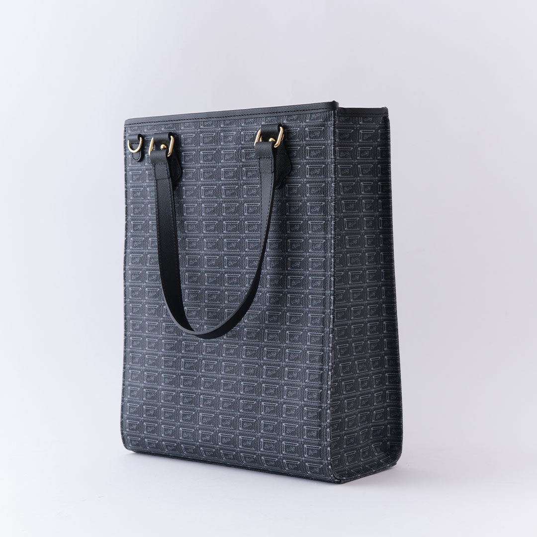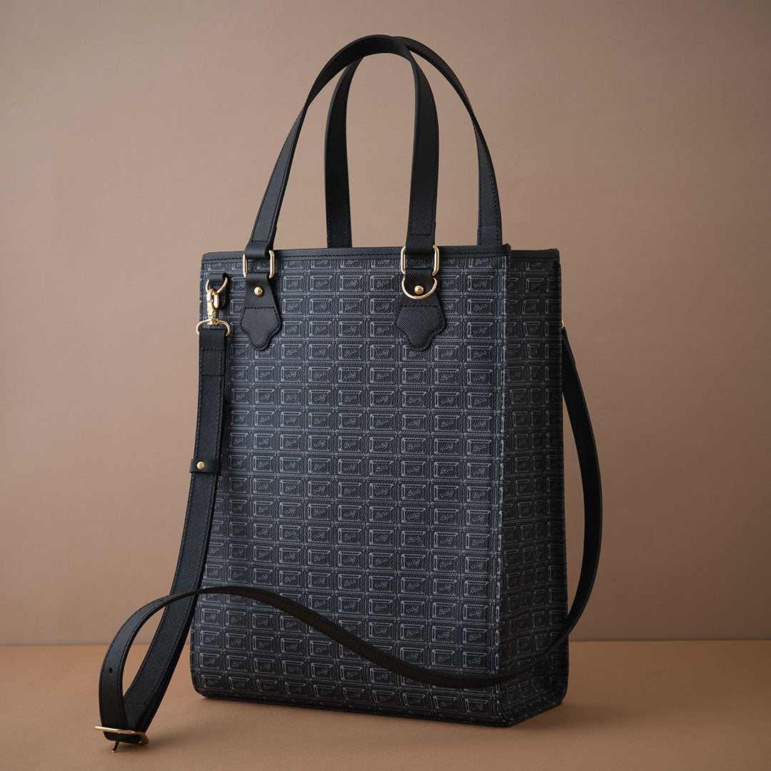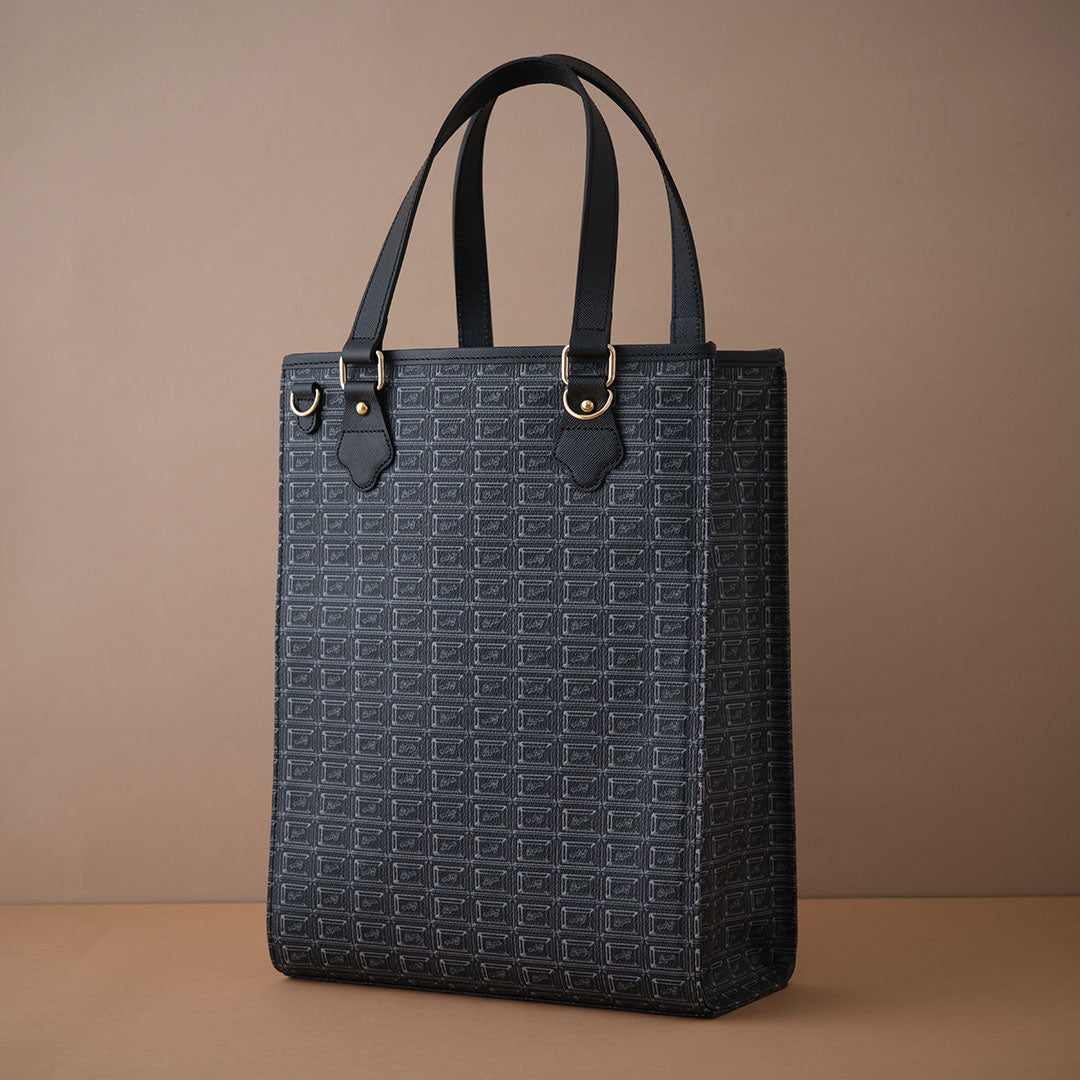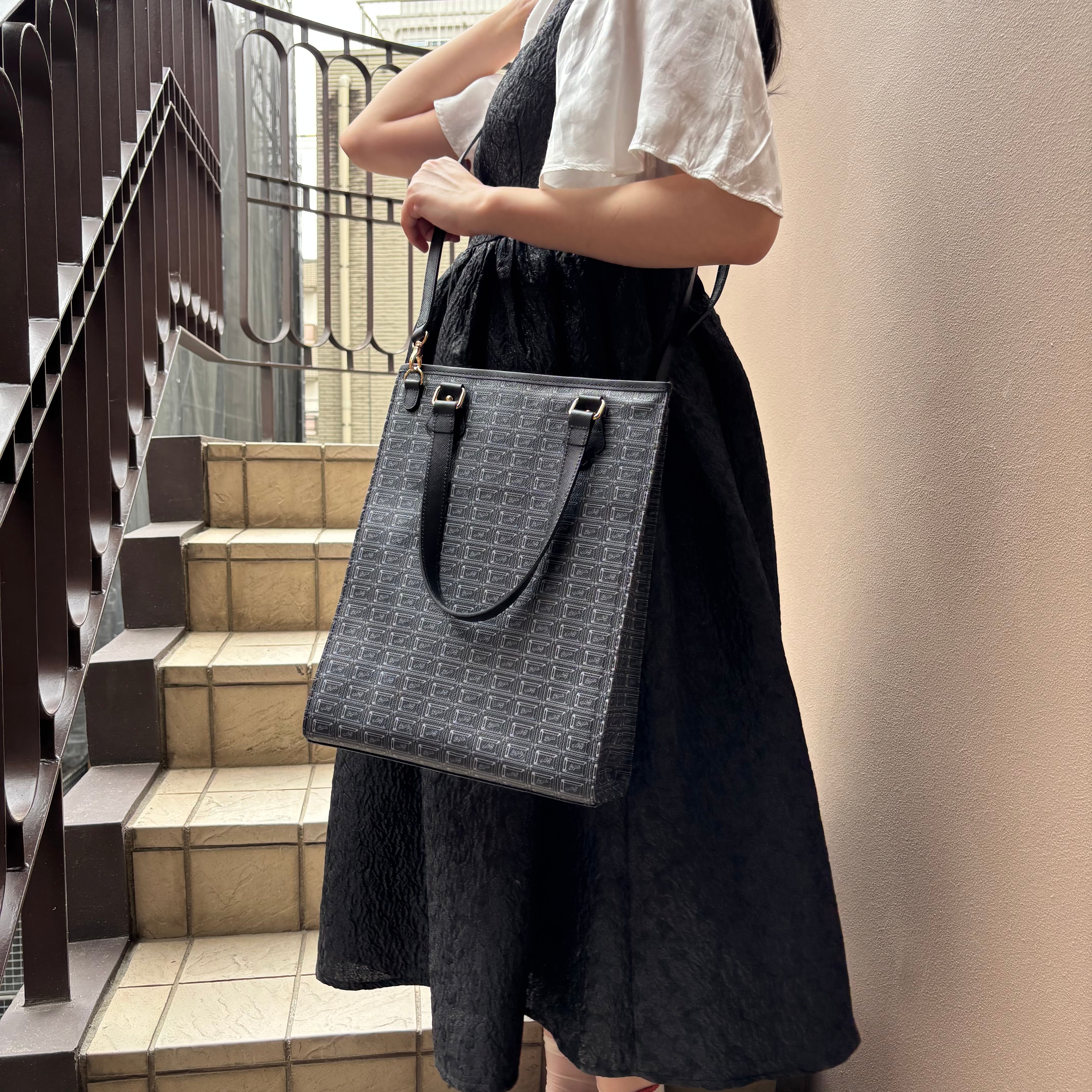 This square-shaped tote bag takes inspiration from a bar of chocolate, blending playful design with practical craftsmanship. Made in Japan from PVC-coated canvas and genuine leather, it features a detachable strap that lets you wear it your way — handheld, over the shoulder, or crossbody.