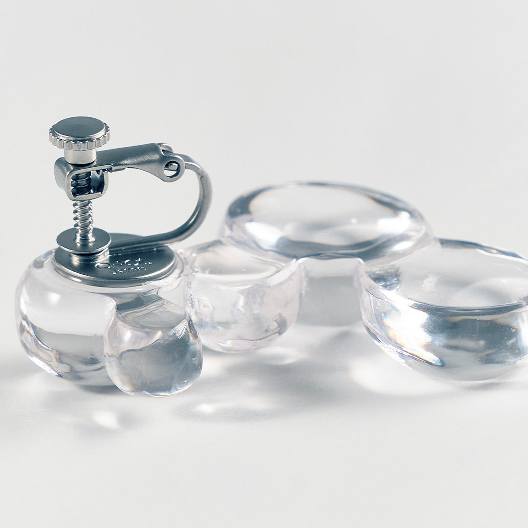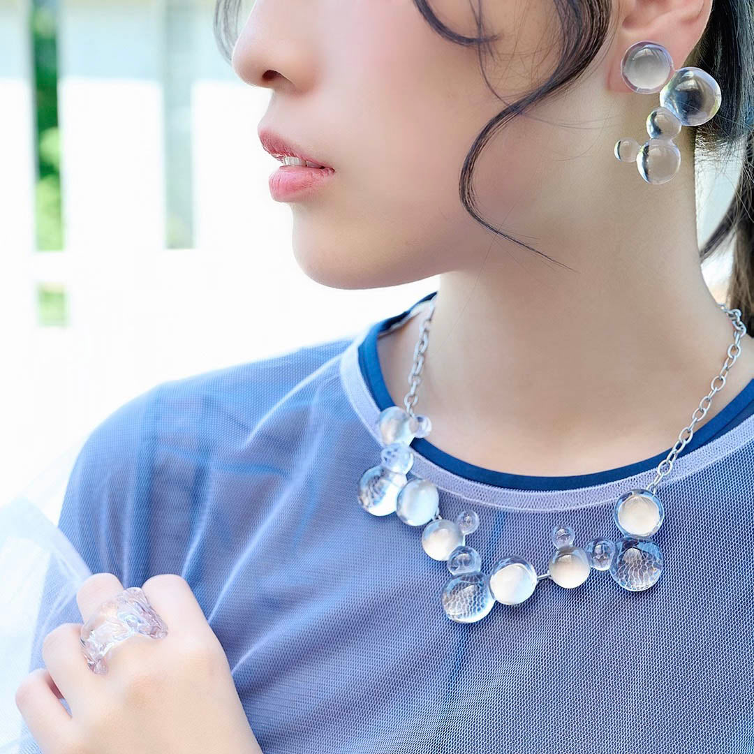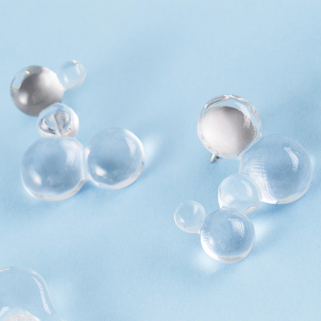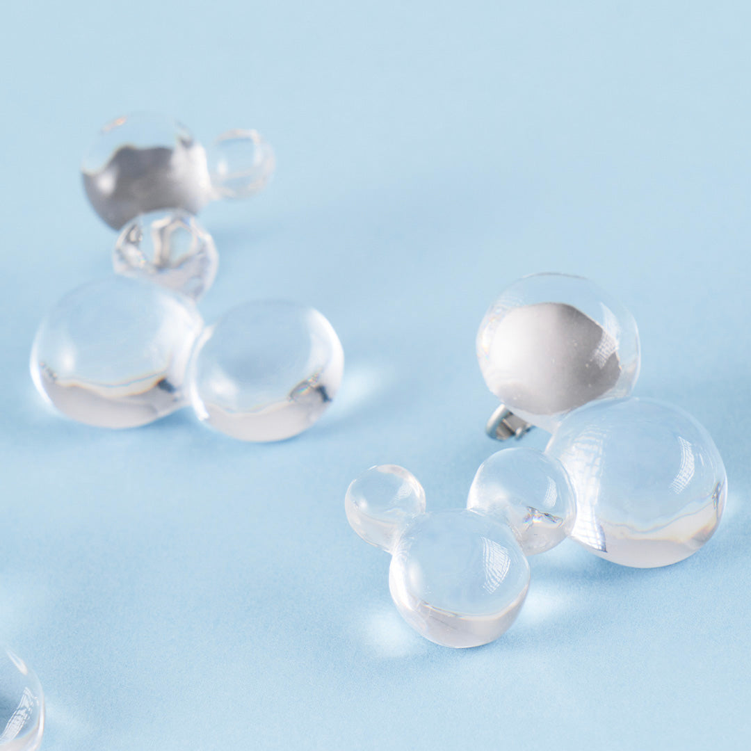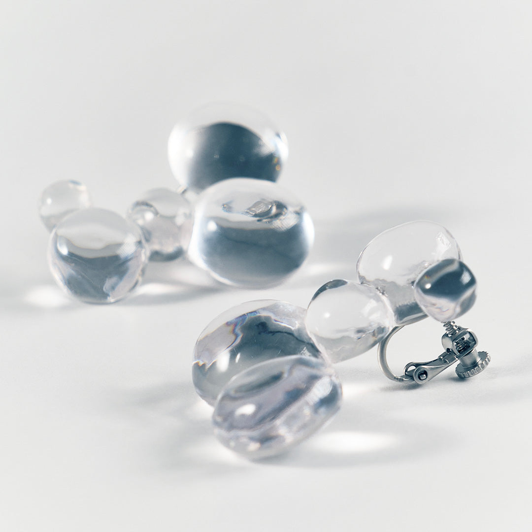 The bubbles clip-on earrings that reflects light from clear bubbles of different sizes finely express the ephemeral bubbles.