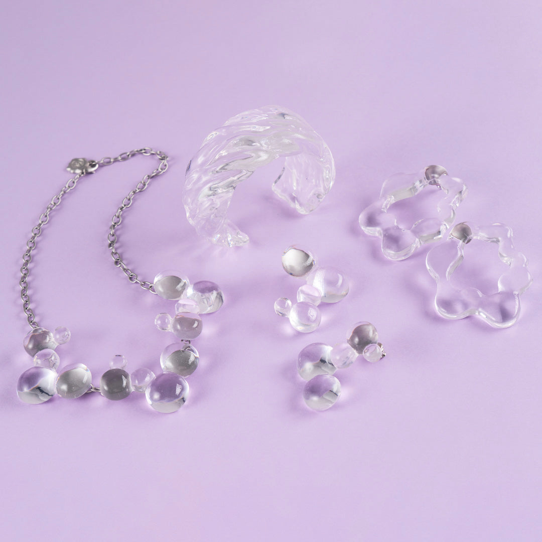 Refraction of clear pale light, water bubbles that flickers and disappear for a short time. A fantastic jewelry collection that is ephemeral and silence like the water bubbles.
