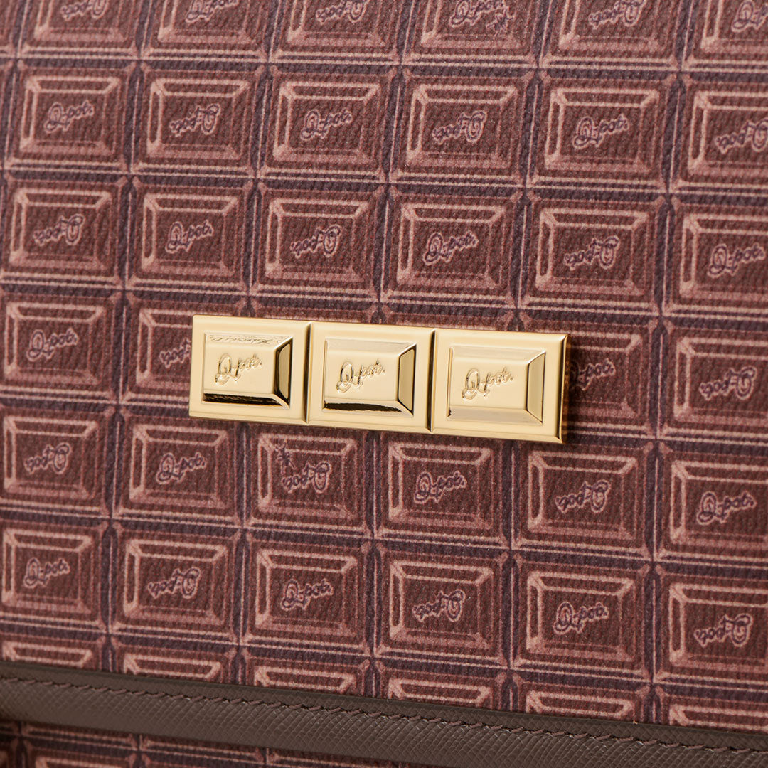 ・Elegant satchel silhouette with a golden chocolate bar charm on top