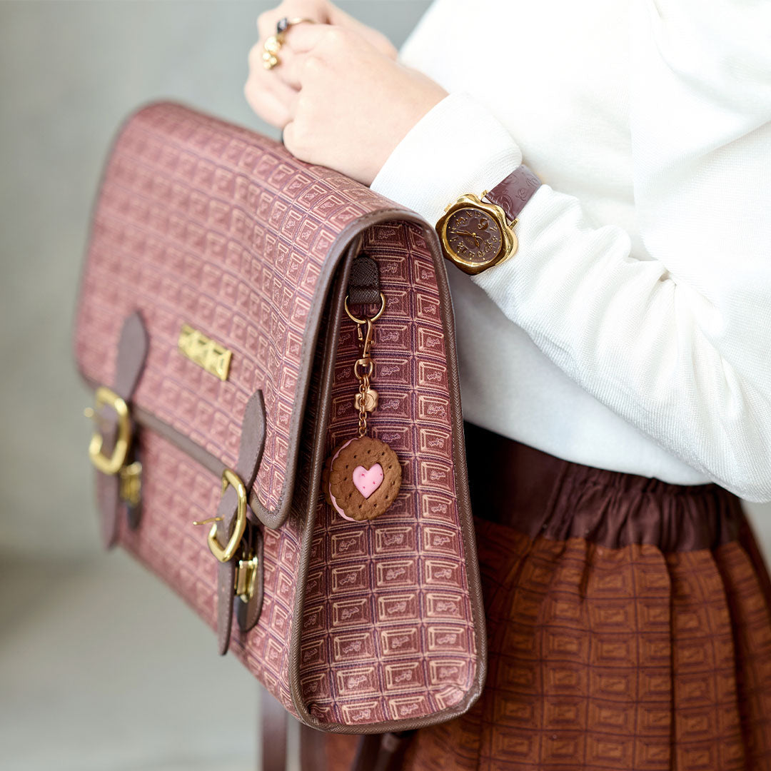 Whether you're headed to work, brunch, or a weekend outing, this chocolate satchel adds a tasteful blend of fun and sophistication to your day. Every detail reflects Q-pot.’s signature world of “wearable sweets” and refined craftsmanship.