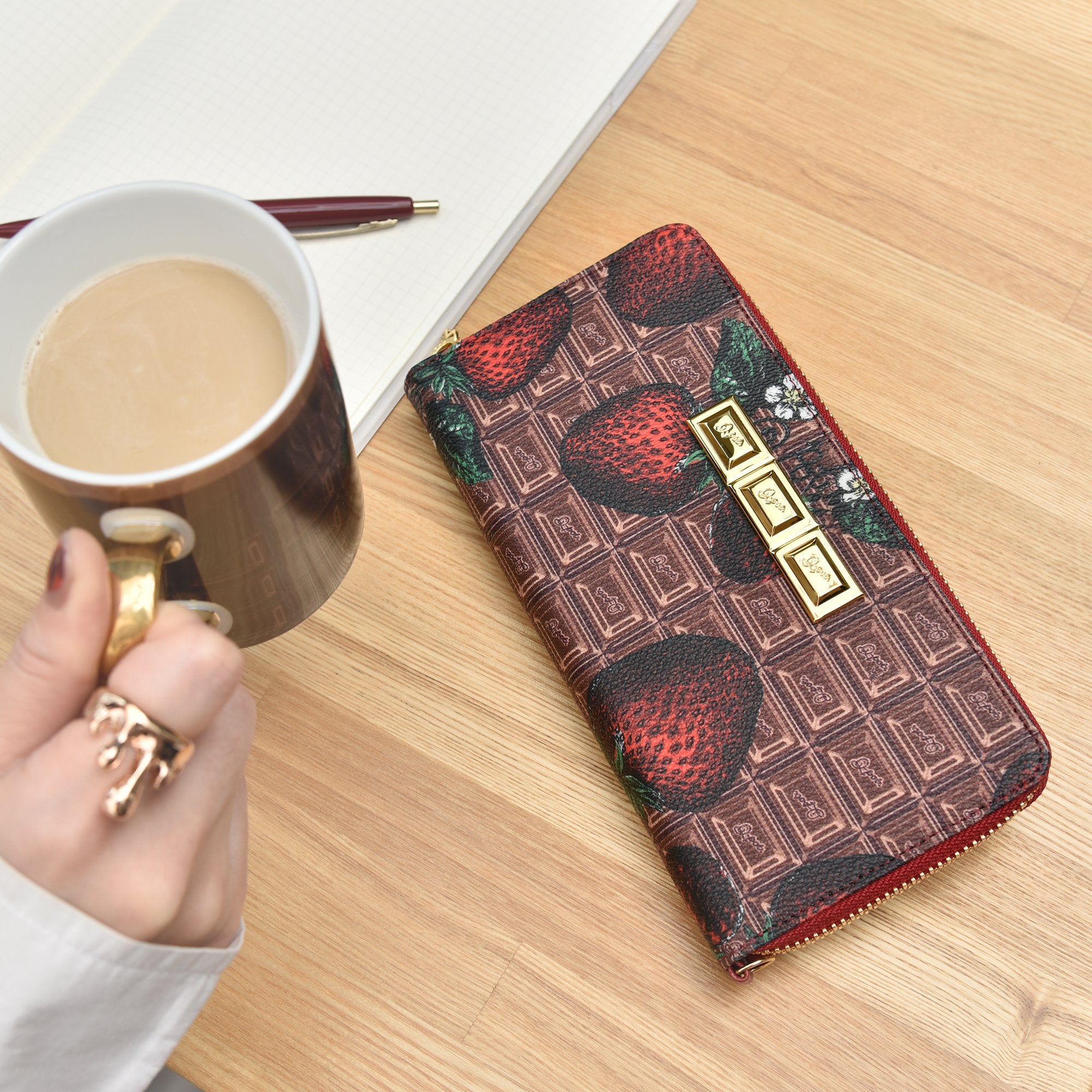 Chocolate × Strawberry Zip Around Long Wallet【Japan Jewelry】