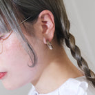 The pierced earring with a glossy texture featuring Q-pot. logo engraved just like a real one. Elevate your style by simply wearing it and add a touch of playfulness to your outfit.
