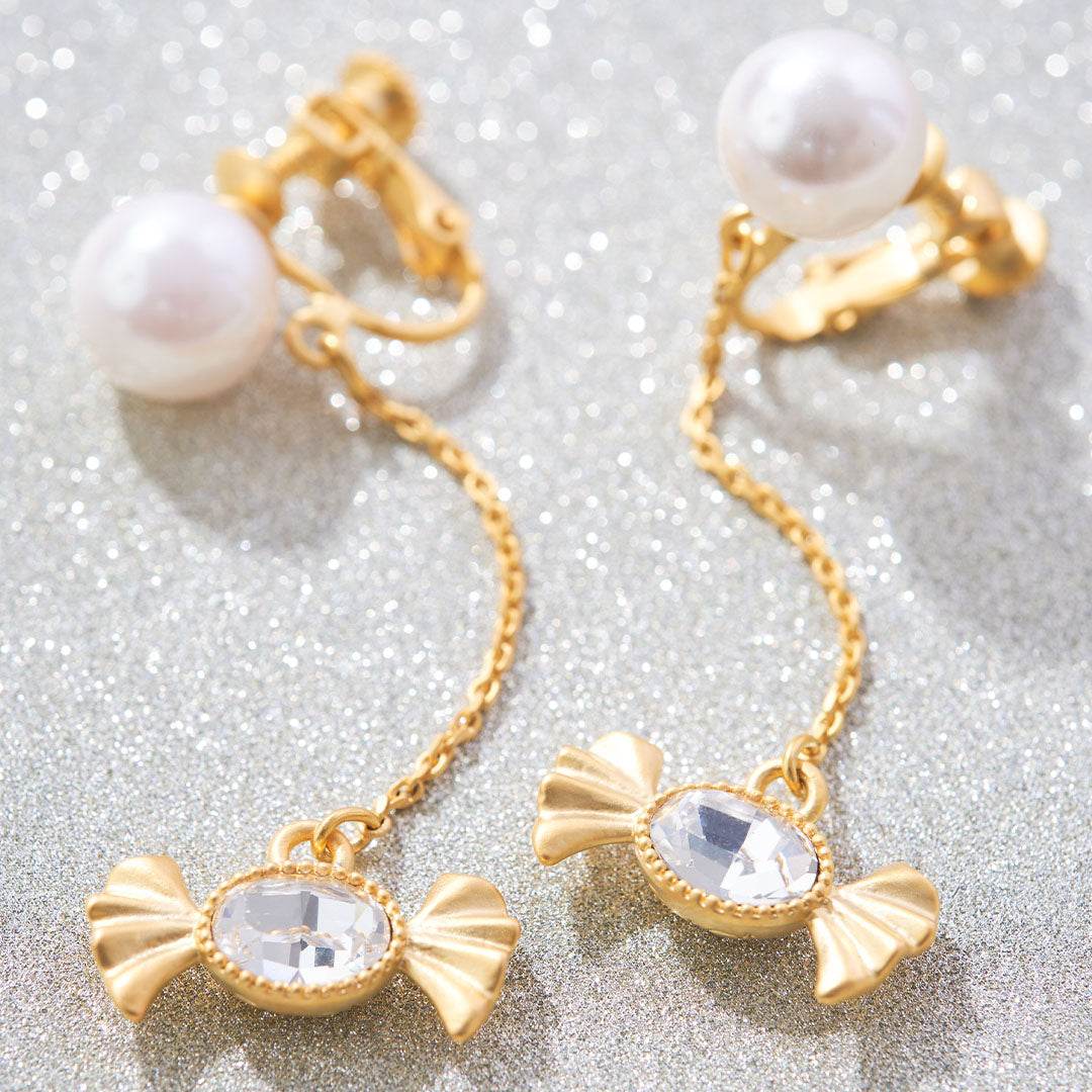Crystal Jewel Candy Pearl Clip-On Earrings (Pair)【Japan Jewelry】