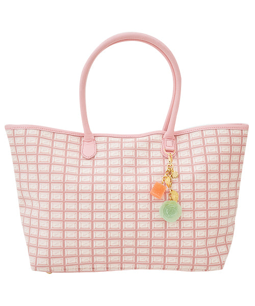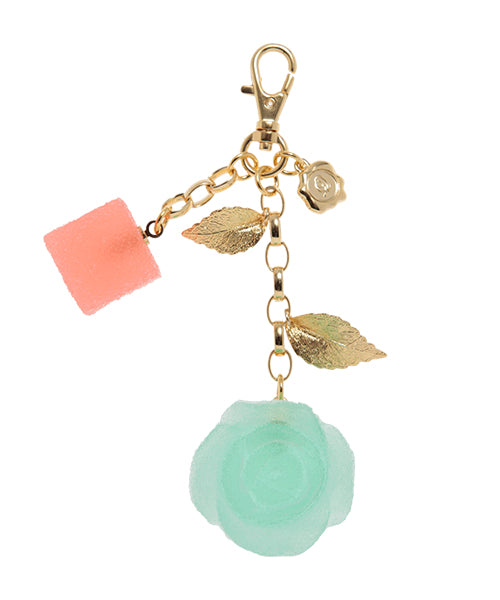 A glamorous bag charm featuring romantic rose pate de fruit and adorable bite-sized square pate de fruit. Its bold and eye-catching size adds a touch of elegance to any outfit.