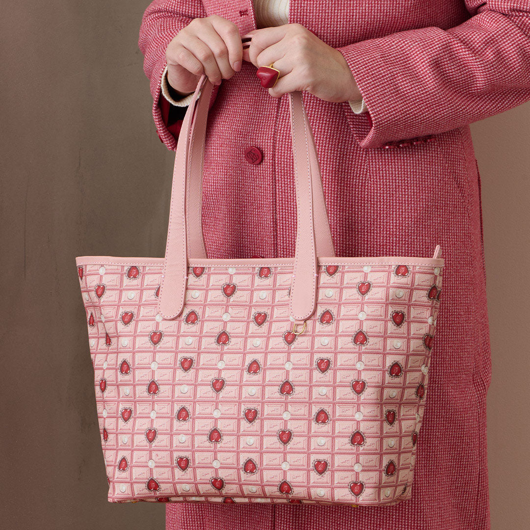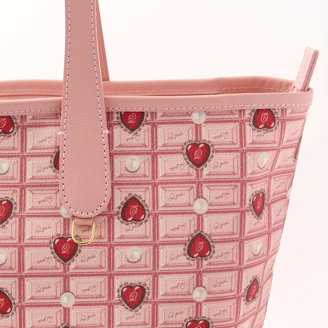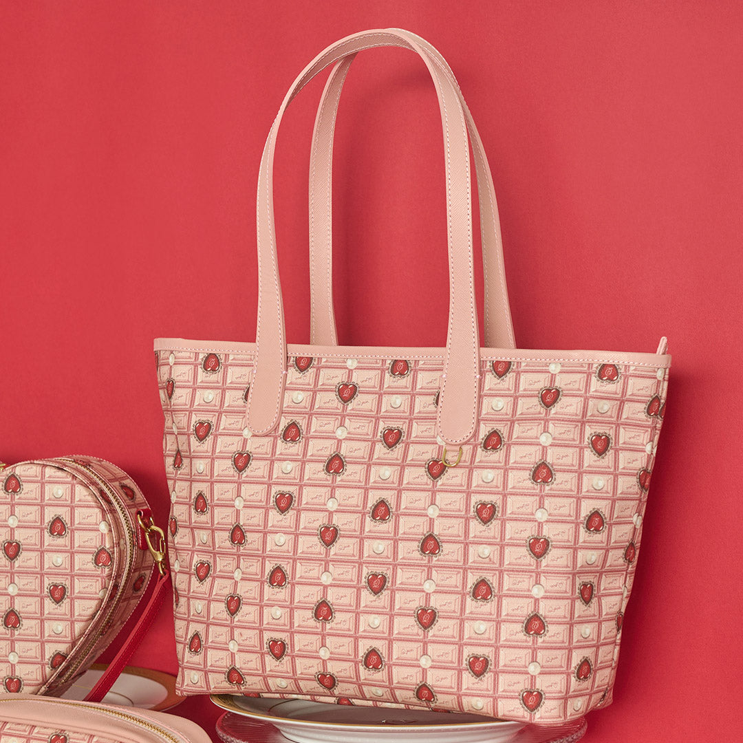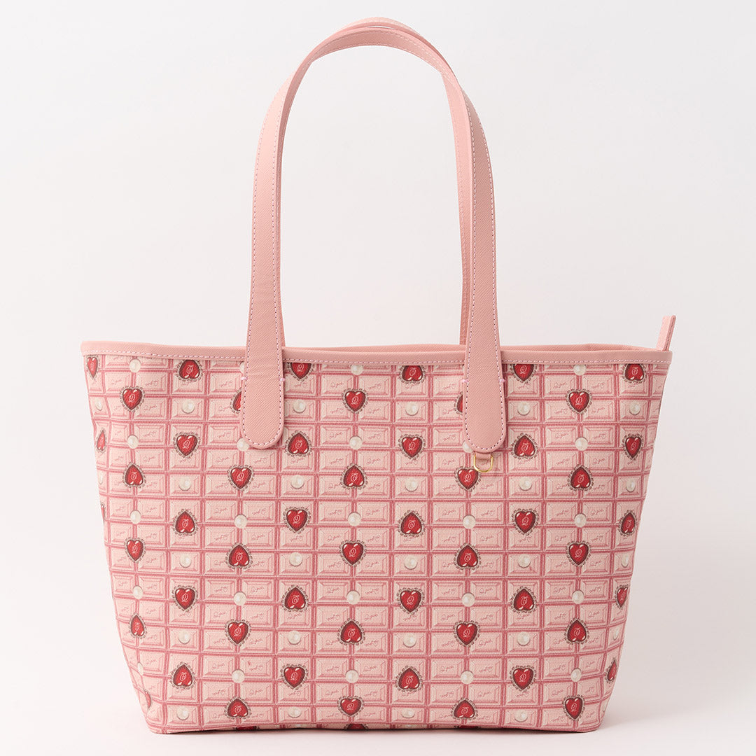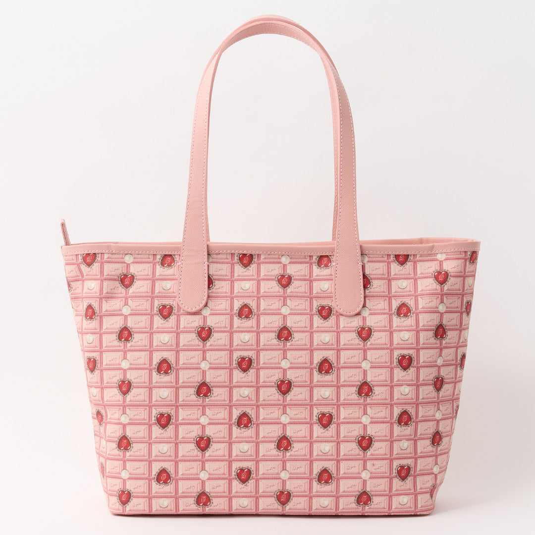 Heart Strawberry Chocolate Zip Leather Tote Bag【Japan Jewelry】
