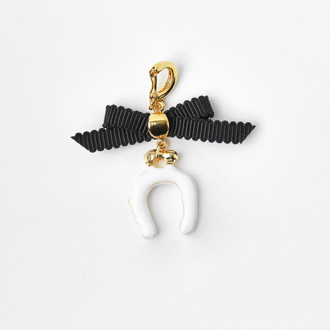 The feve jewelry with such a blessing mood is a premonition that happiness will come by wearing it! Choose your favorite feve according to your wishes. Epoxy resin-finished porcelain-like motif decorated with dazzling gold-colored Q mark on it and classical grosgrain ribbon at the top.