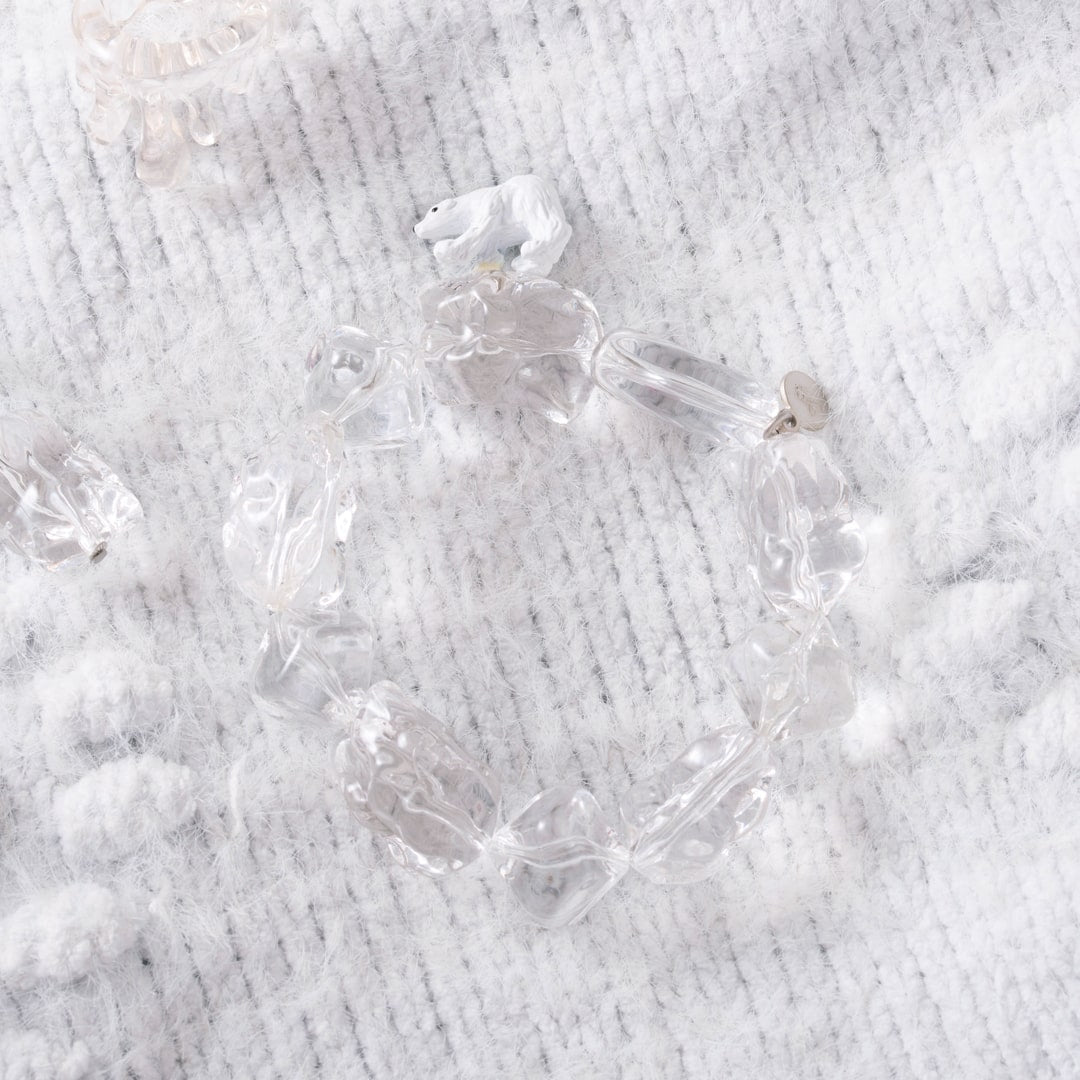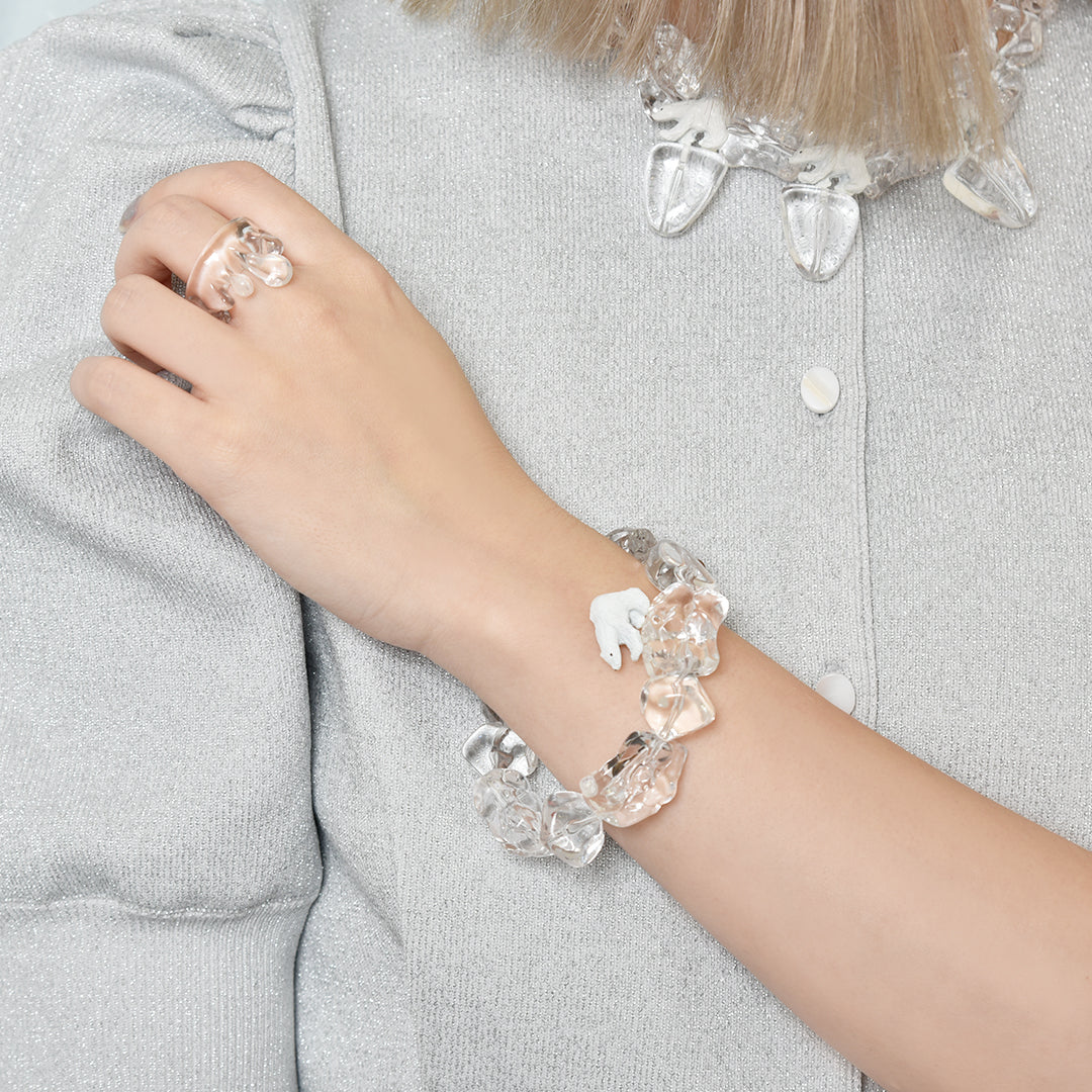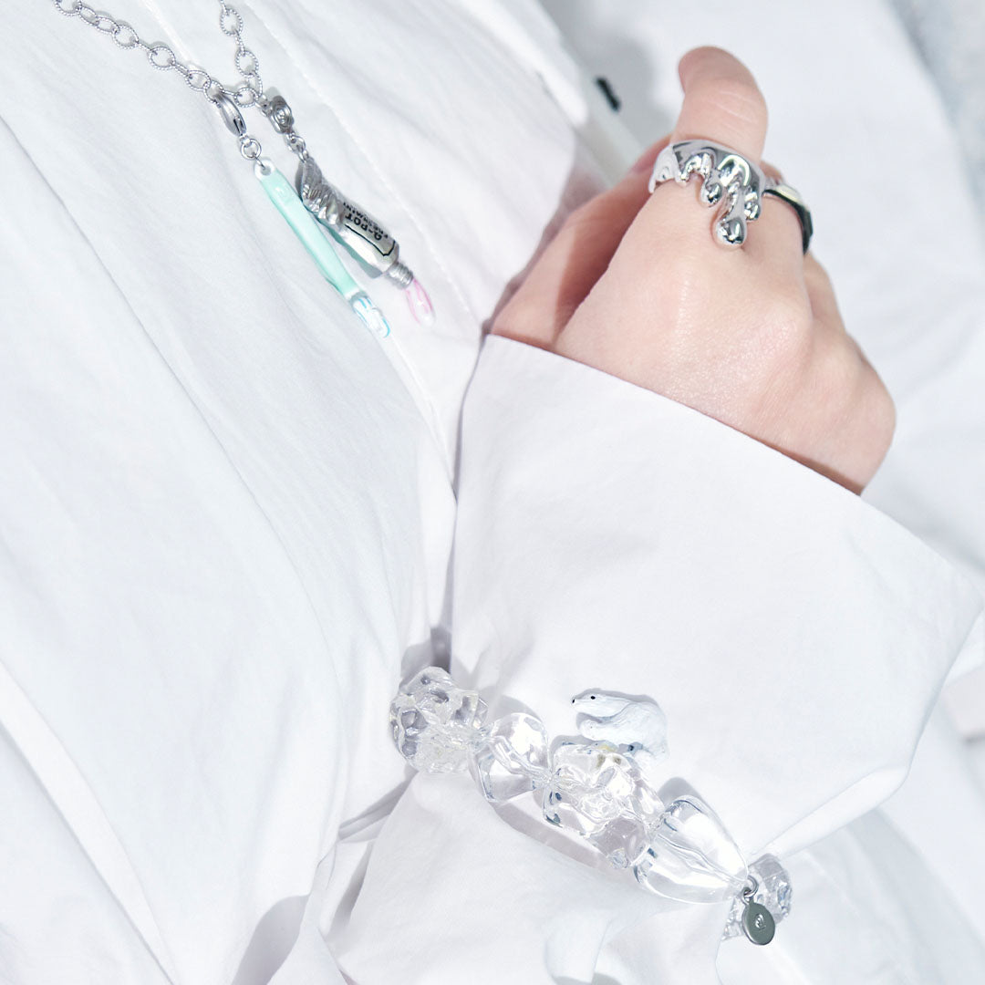 An accessory with the clarity of ice that makes who wear and see it feel cool. Polar bears seeking cool "ice (place)" are just like us. Please enjoy the COOLEST coordination with a surreal message hidden behind the witty design this summer.