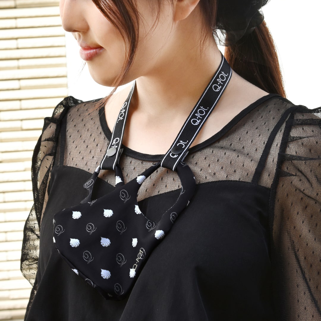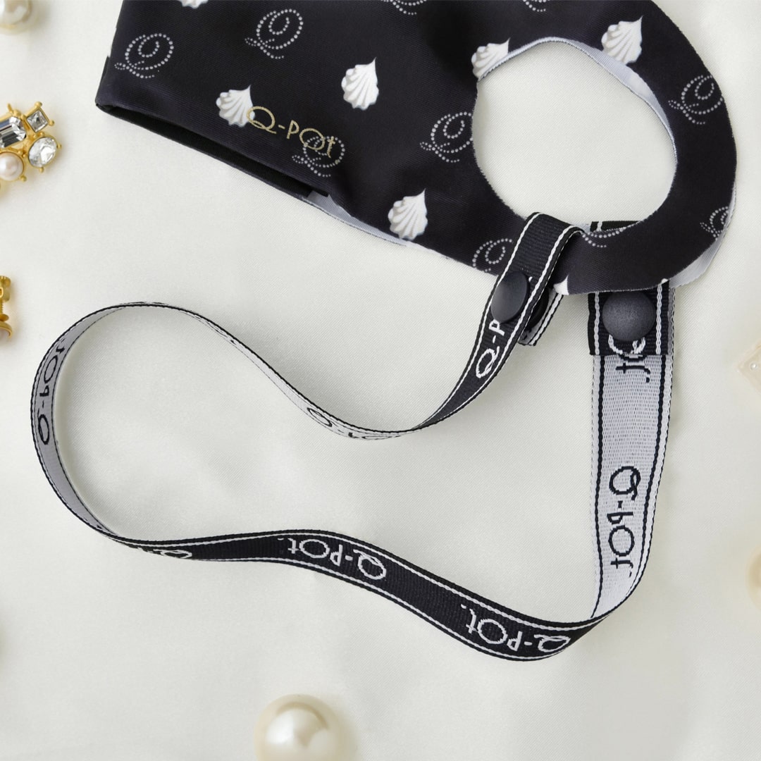A stylish look with Q-pot. logo, new mask strap is out!