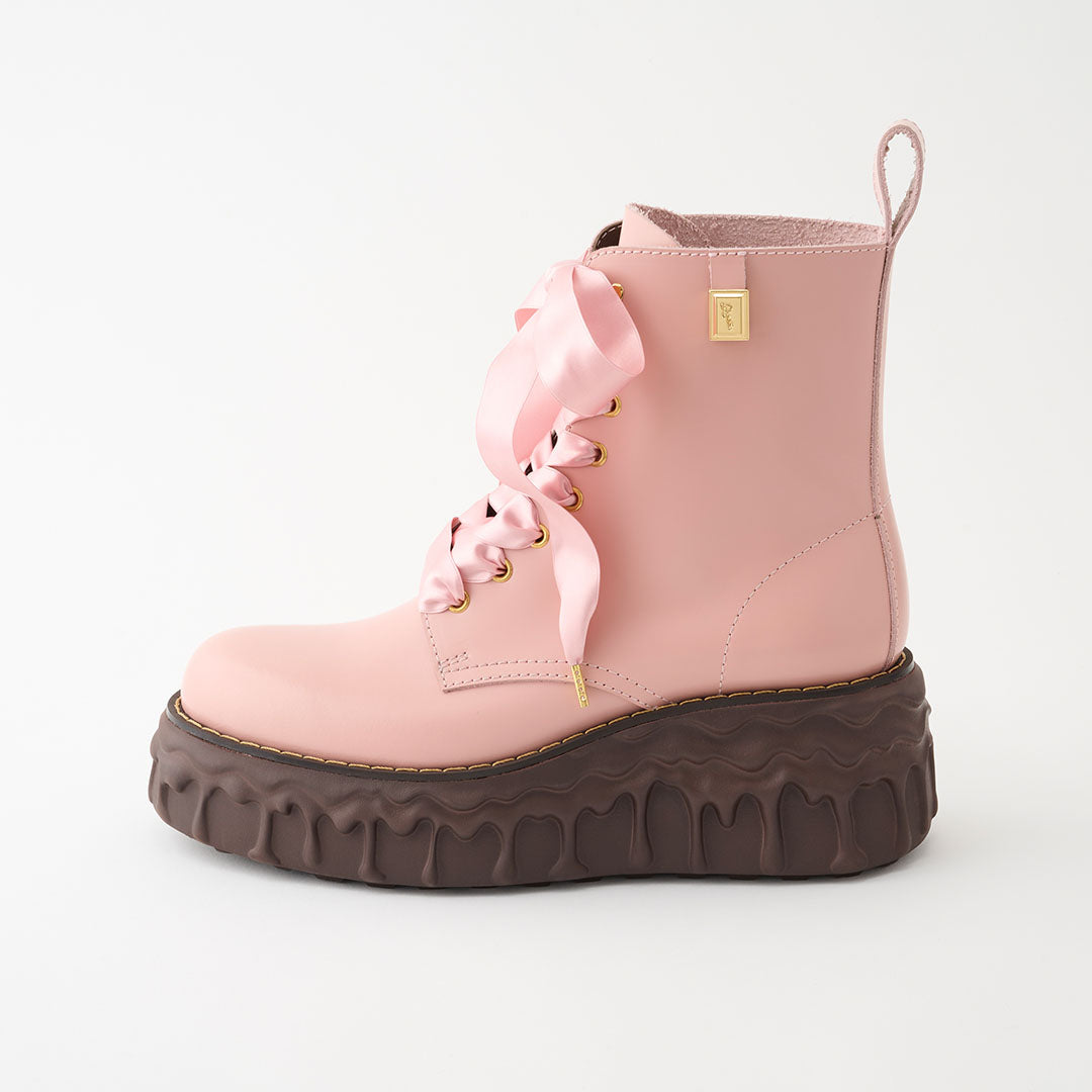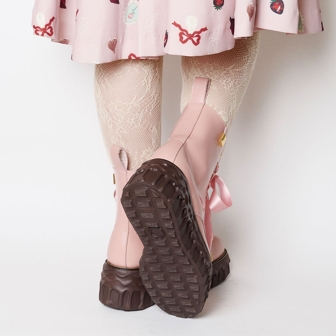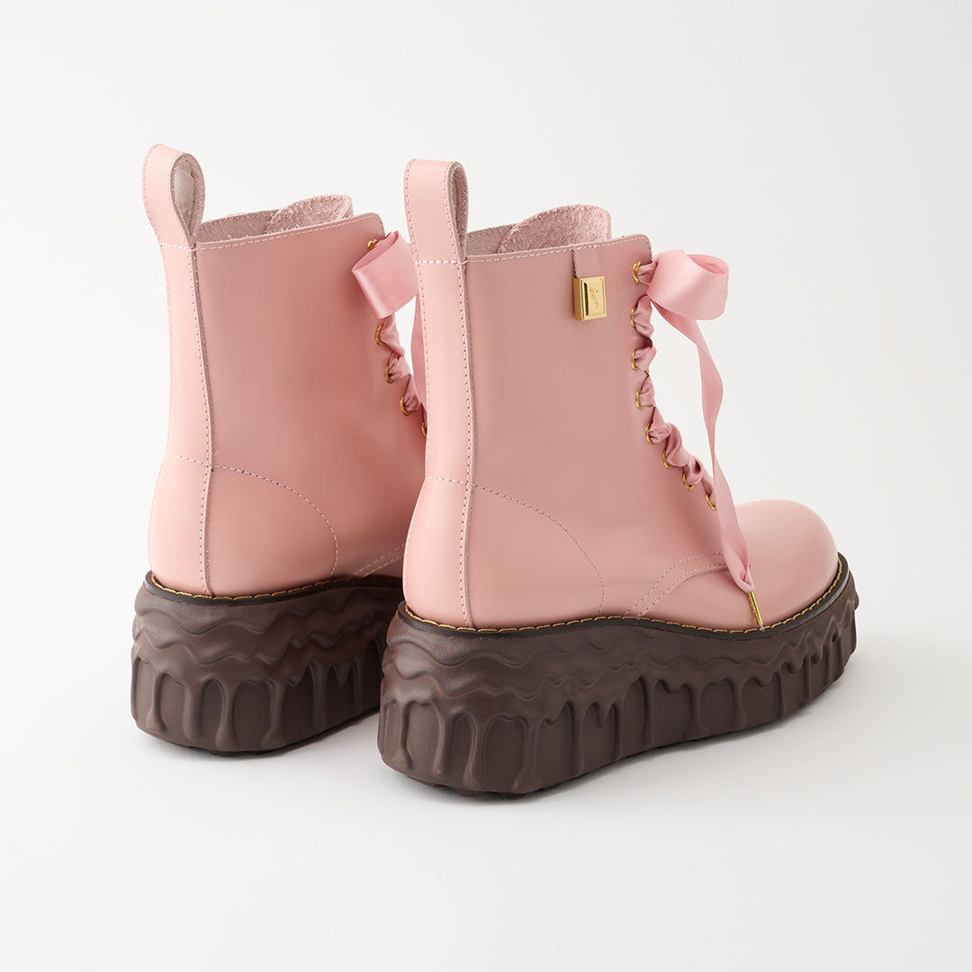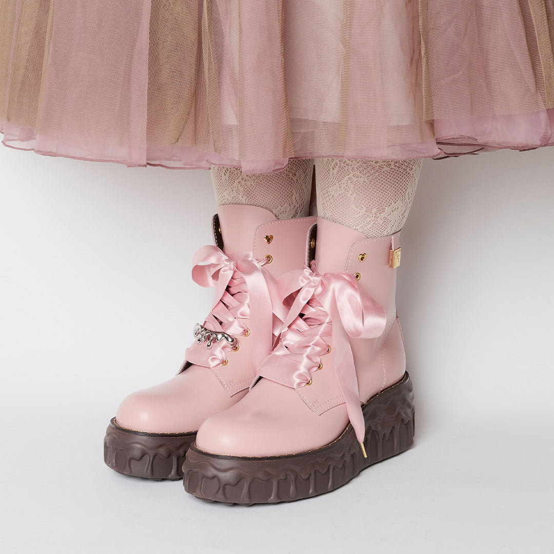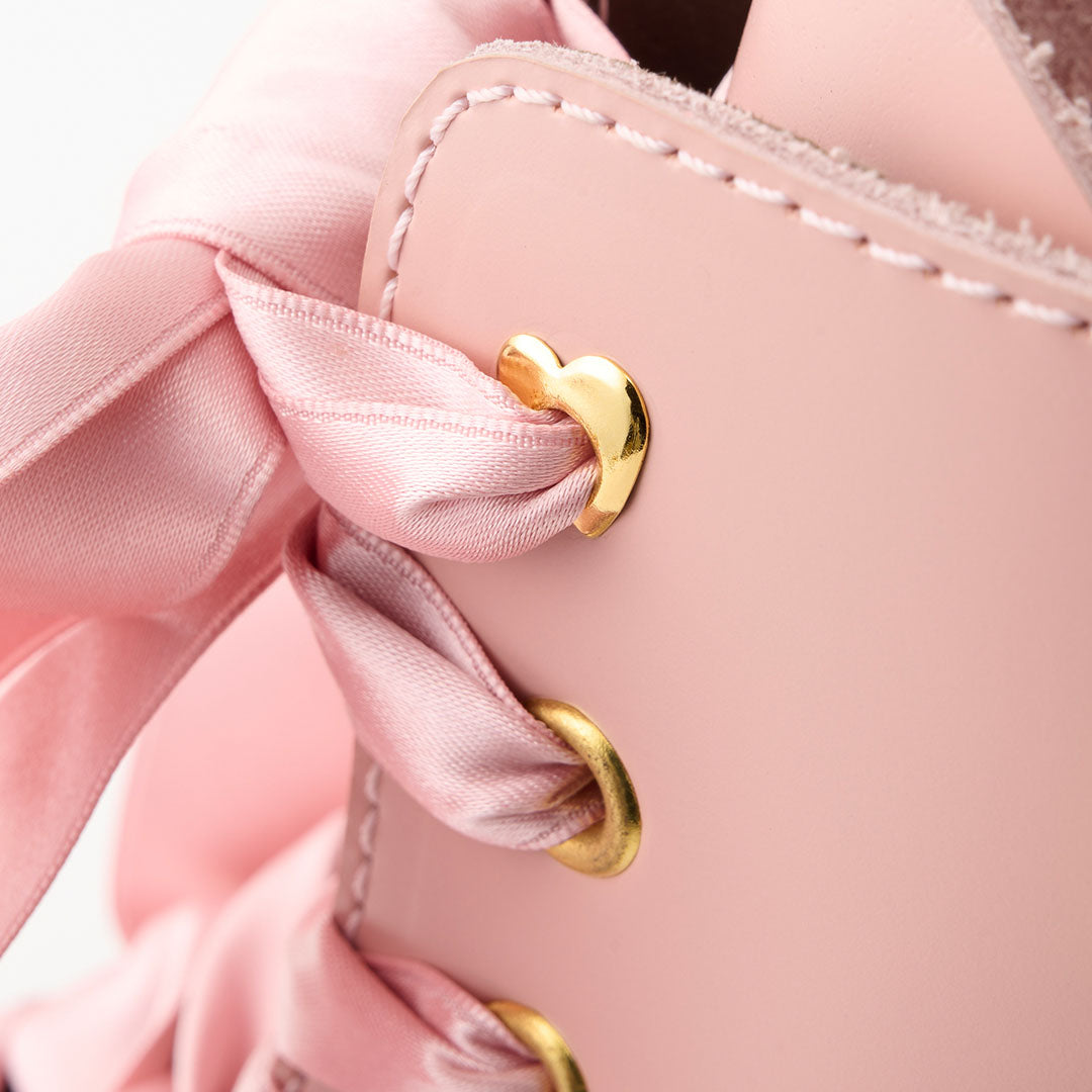 Melting Chocolate Satin Ribbon Lace Up Leather Boots (Pale Pink)【Japan Jewelry】