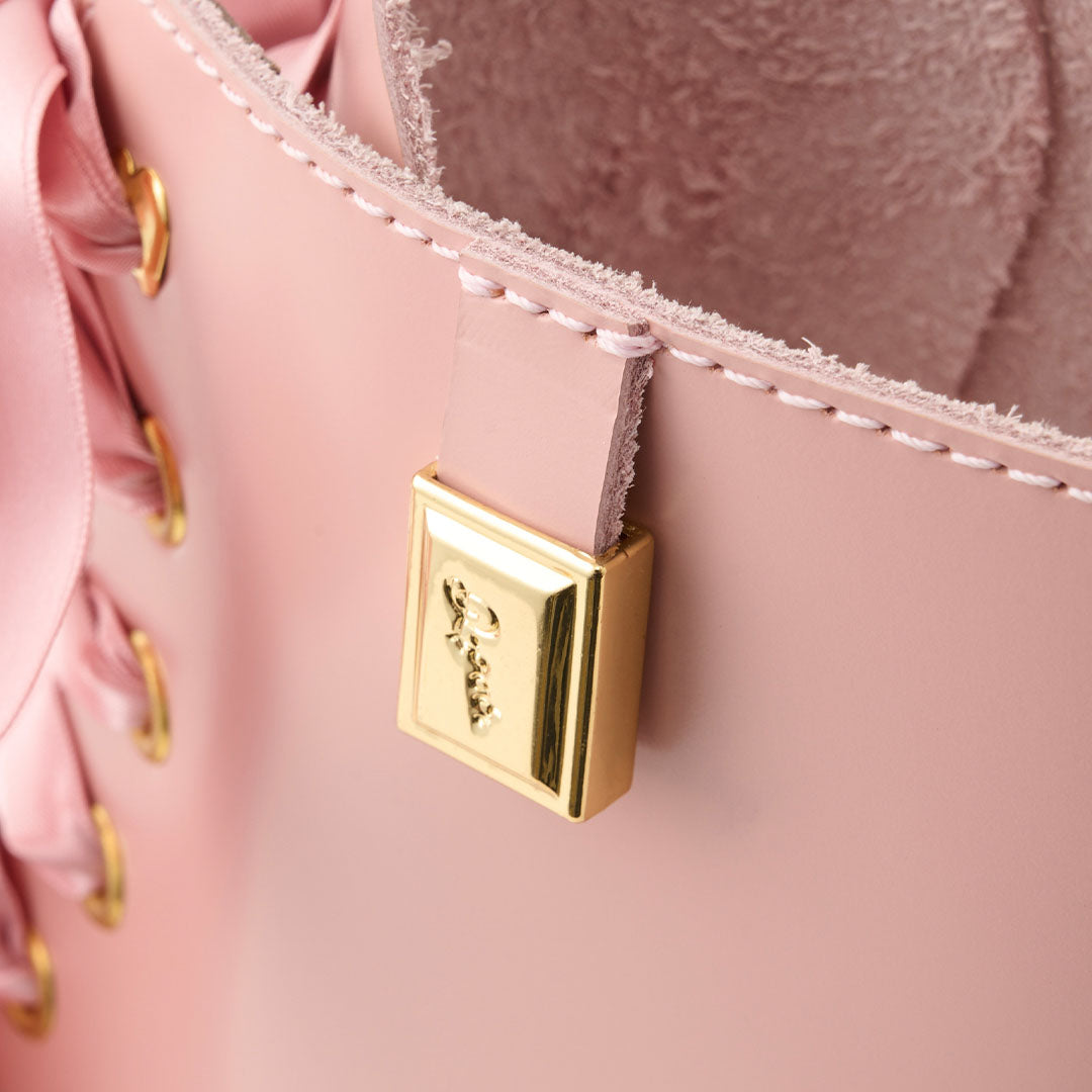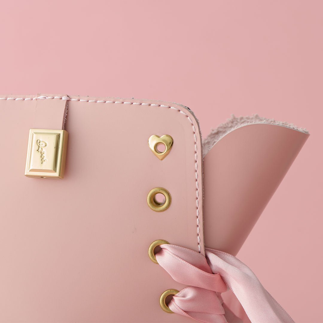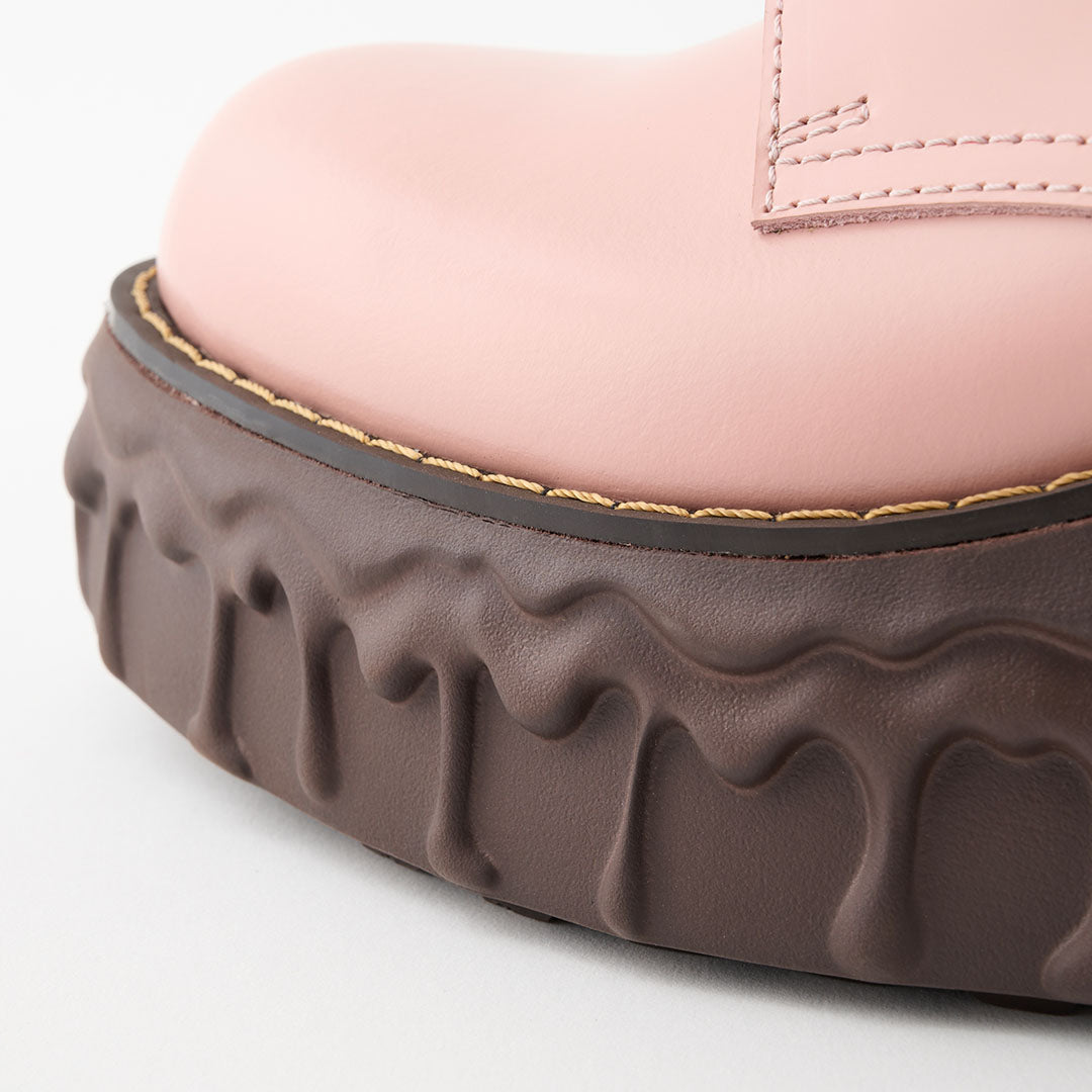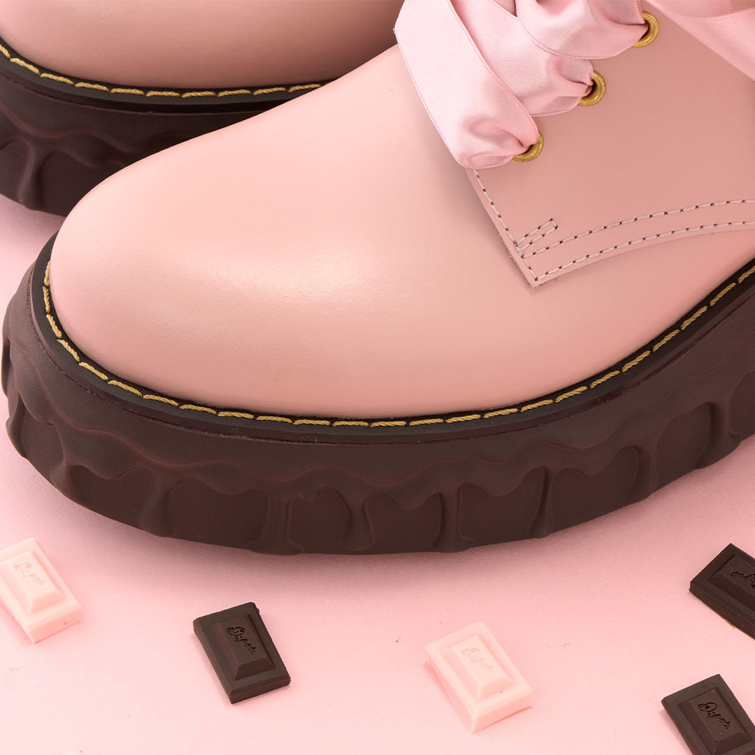 Melting Chocolate Satin Ribbon Lace Up Leather Boots (Pale Pink)【Japan Jewelry】