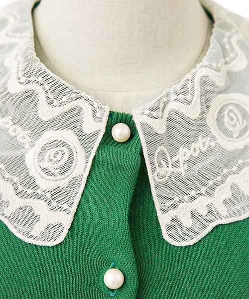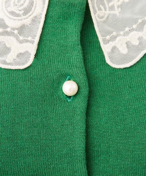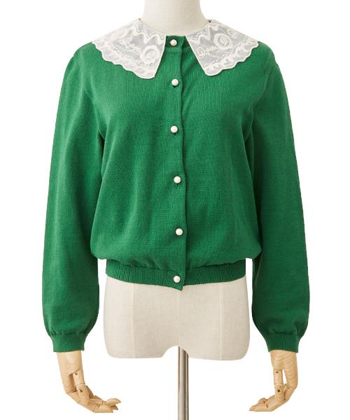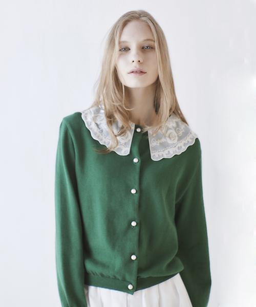Melting Lace Collar Cardigan (Green)【Japan Jewelry】