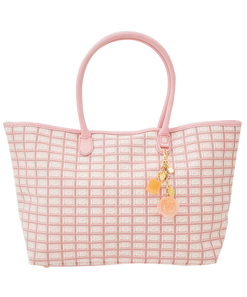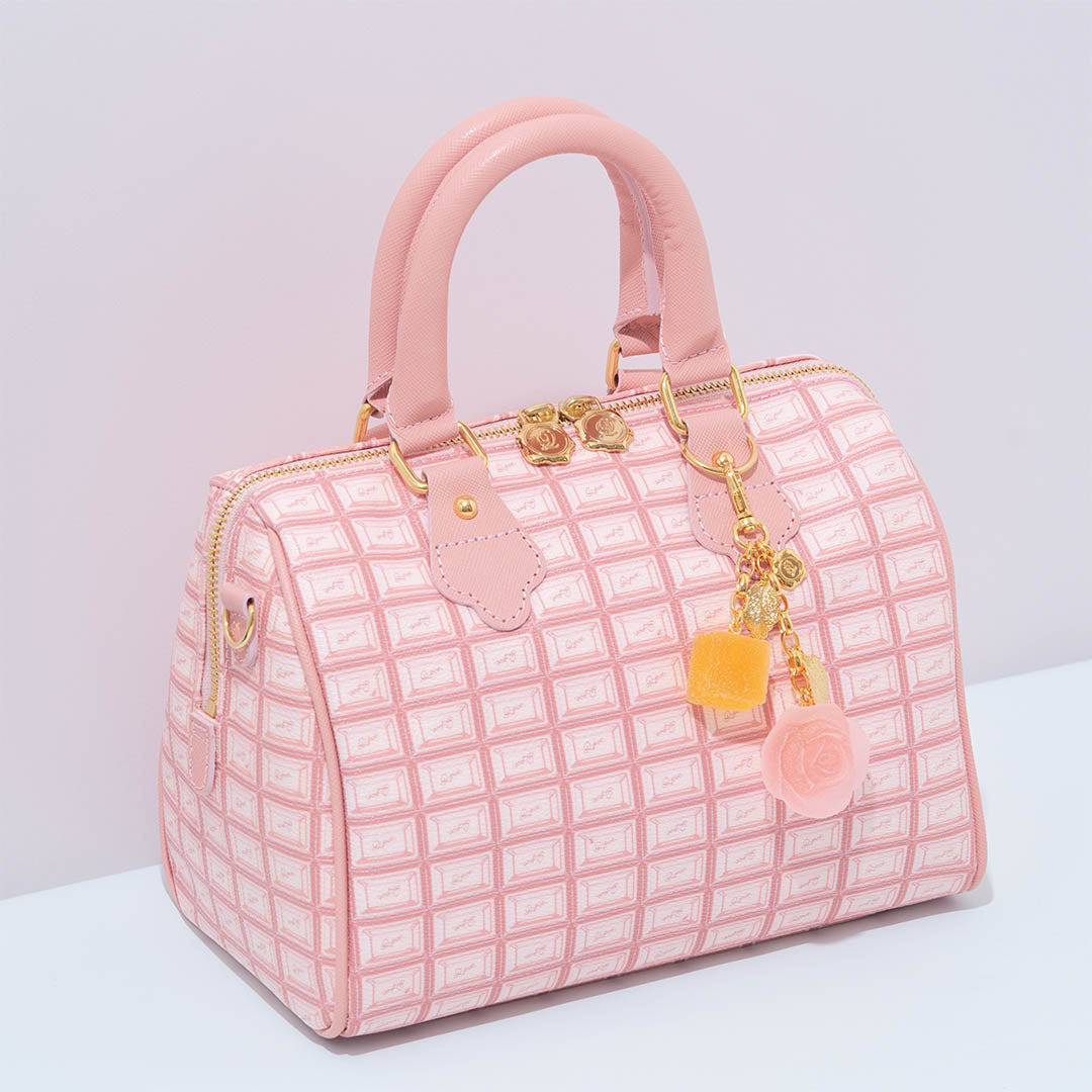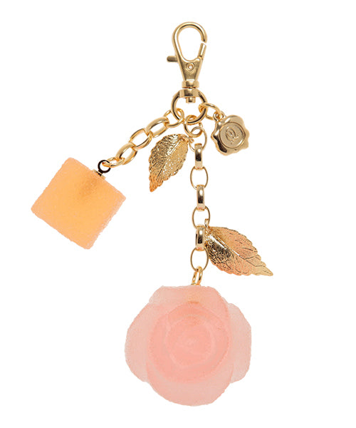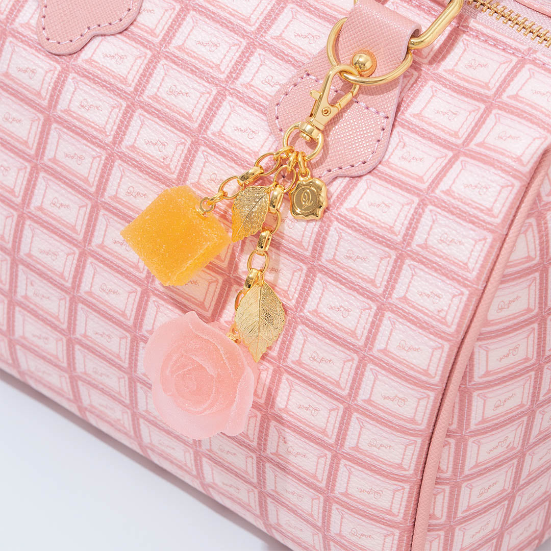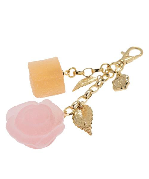 A glamorous bag charm featuring romantic rose pate de fruit and adorable bite-sized square pate de fruit. Its bold and eye-catching size adds a touch of elegance to any outfit.