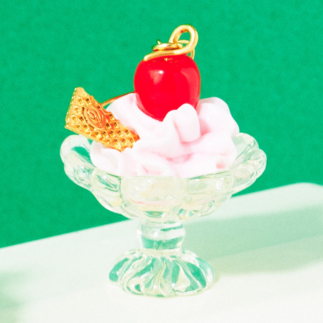 All the sweet retro goodness comes in with strawberry sundae! The design of fresh pink whipped cream with a shiny cherry on the top in a clear sundae cup has a nice contrast of color and the retro American diner feel. It's chunky enough to grab attention, but don't get surprised to feel how light it is!