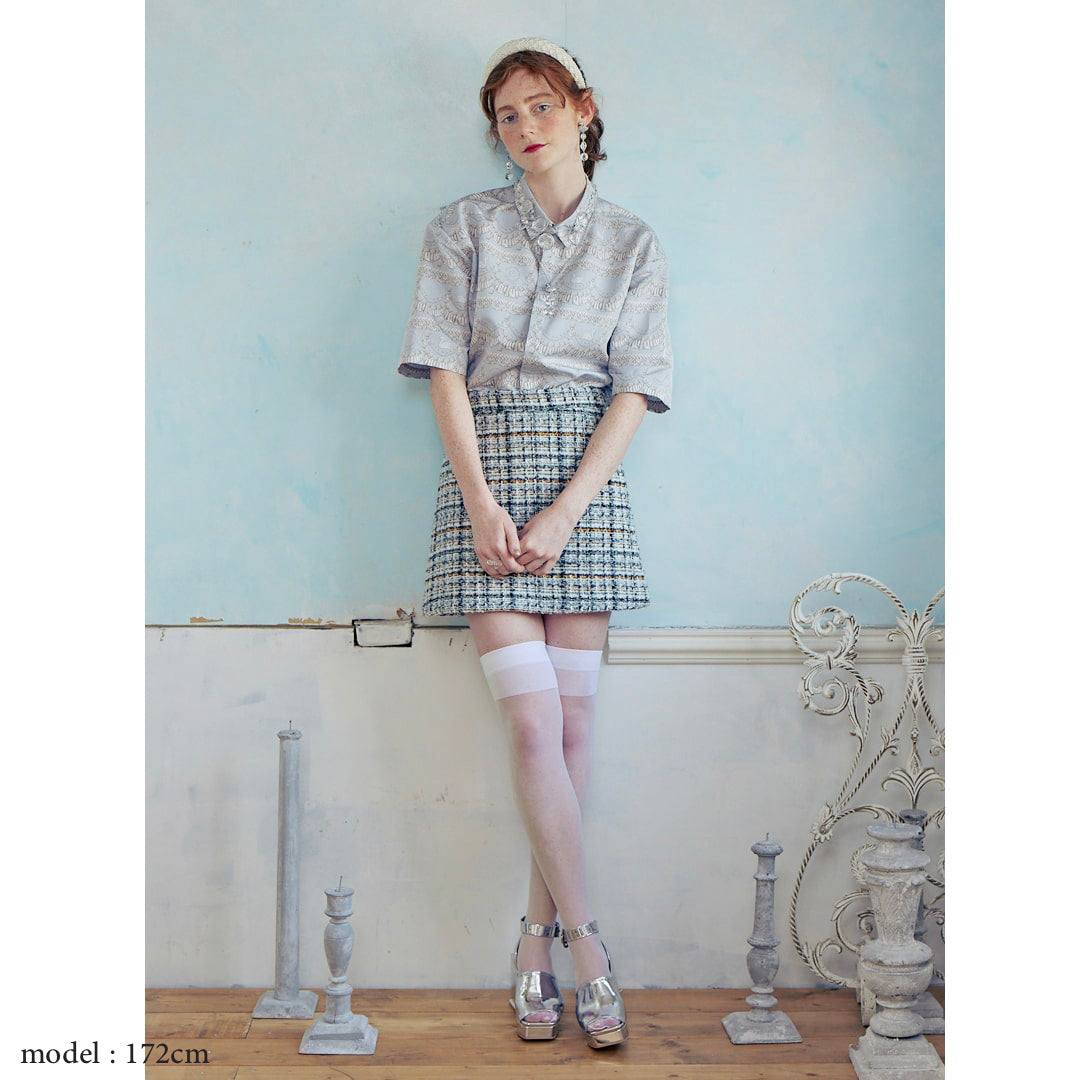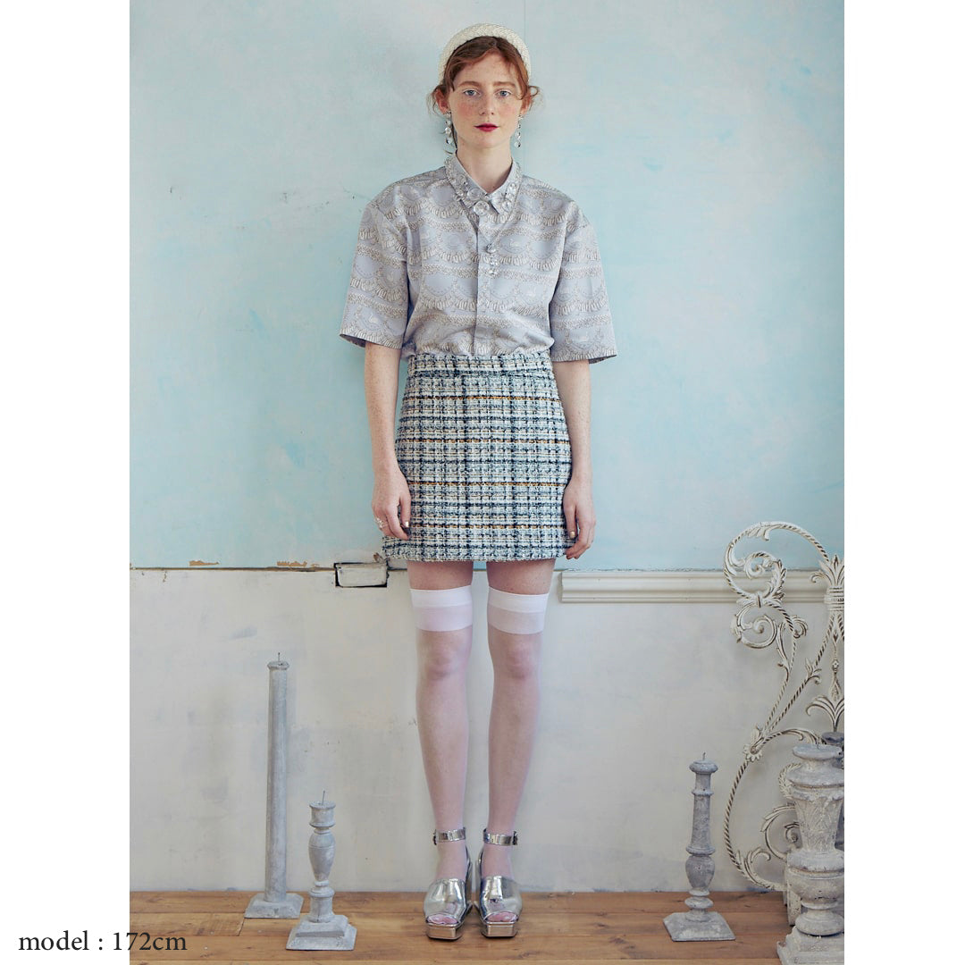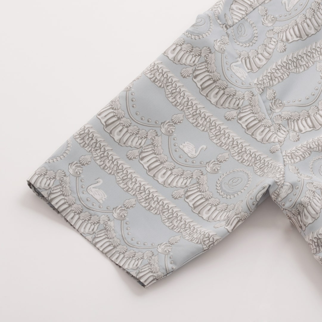 With elegant cream that is layered on top of each other and symbolic swan decorated, the elegant appearance like a sugar craft cake. With the skirt and setup of the same collection, you can enjoy dressing like a dress. It is a dress shirt that you can enjoy genderlessly with a loose and loose size.