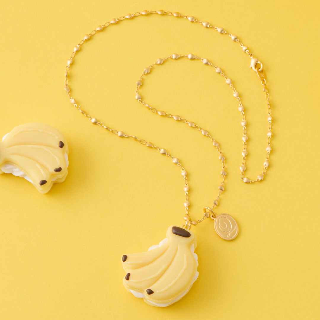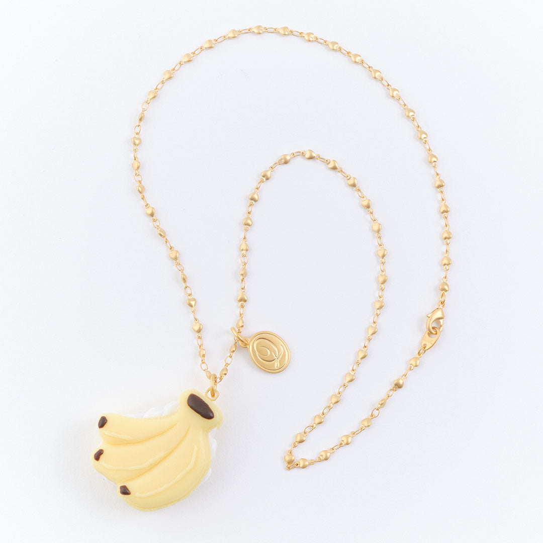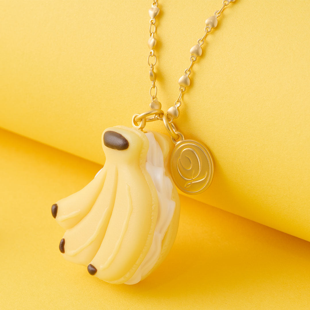 A pop macaron inspired by fresh banana! The banana-shaped macaron shells filled with plenty of cream and painted with chocolate pen. The cheerful yellow will make you feel happy and the texture of if is so real that as if you can smell the sweet scent!